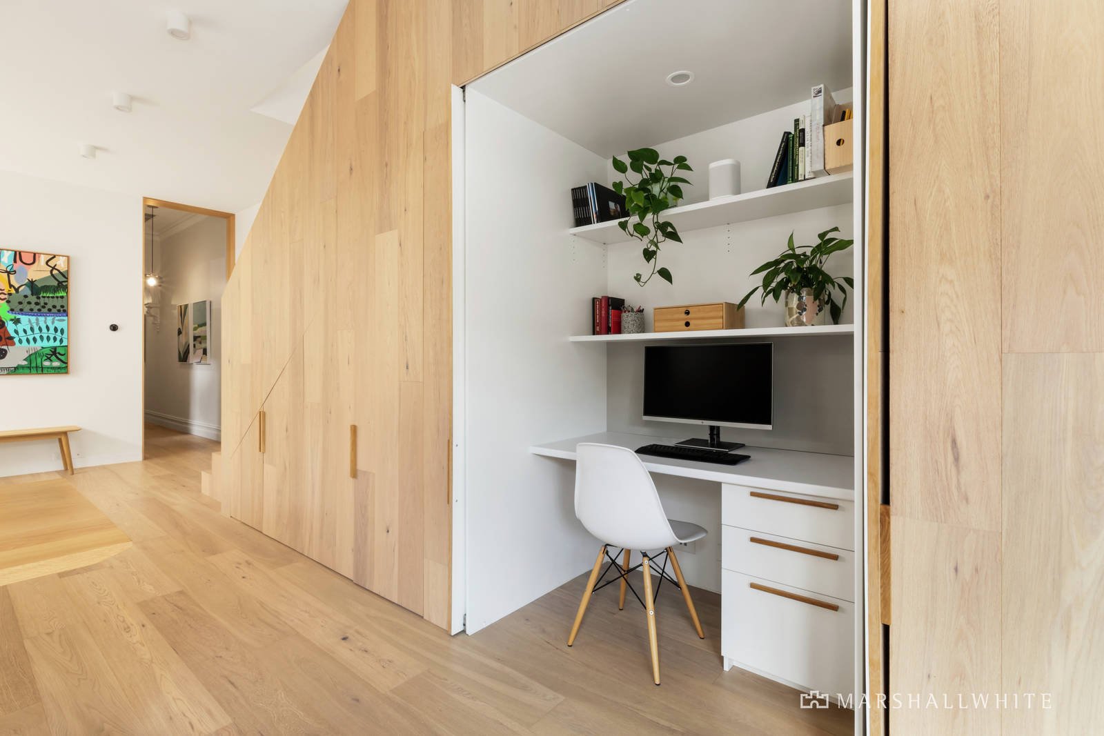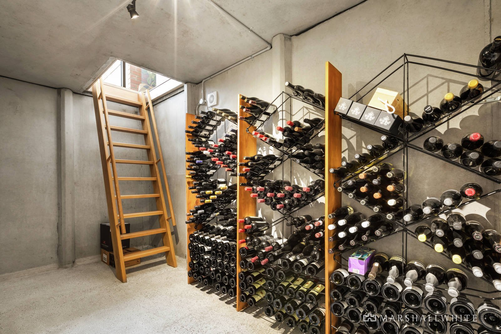 A traditional arched entrance hall featuring wide oak floors flows through to an expansive light-filled open plan living and dining room with a gas fire, clever concealed home office and sleek gourmet kitchen appointed with stone benches and premium Miele appliances. A trap door reveals a sensational wine cellar and tasting room below. Stacking glass doors and windows seamlessly connect the interior spaces with the glorious, landscaped north-facing garden surrounds with built in BBQ and bluestone seating. The beautiful main bedroom with walk in robe and stunning en suite enjoys its own space downstairs while a separate living zone upstairs comprises two bedrooms with built in robes, a stylish bathroom and a retreat opening to a north-facing balcony.