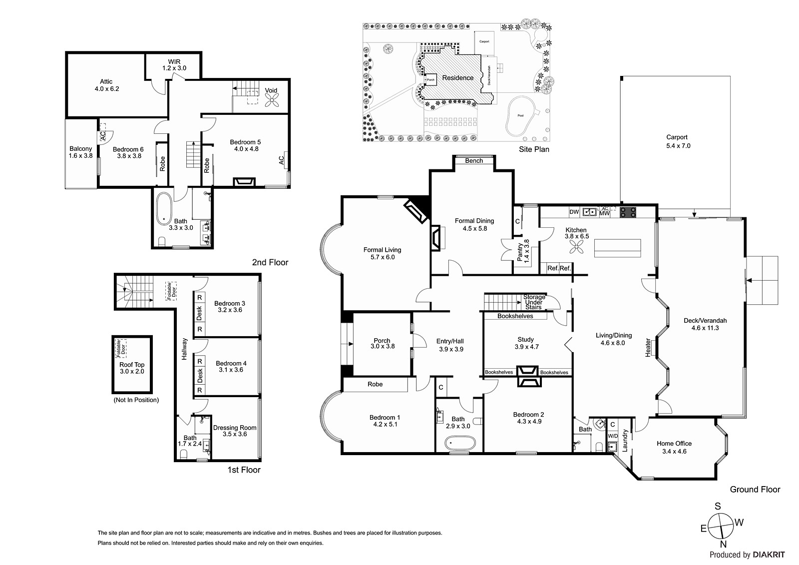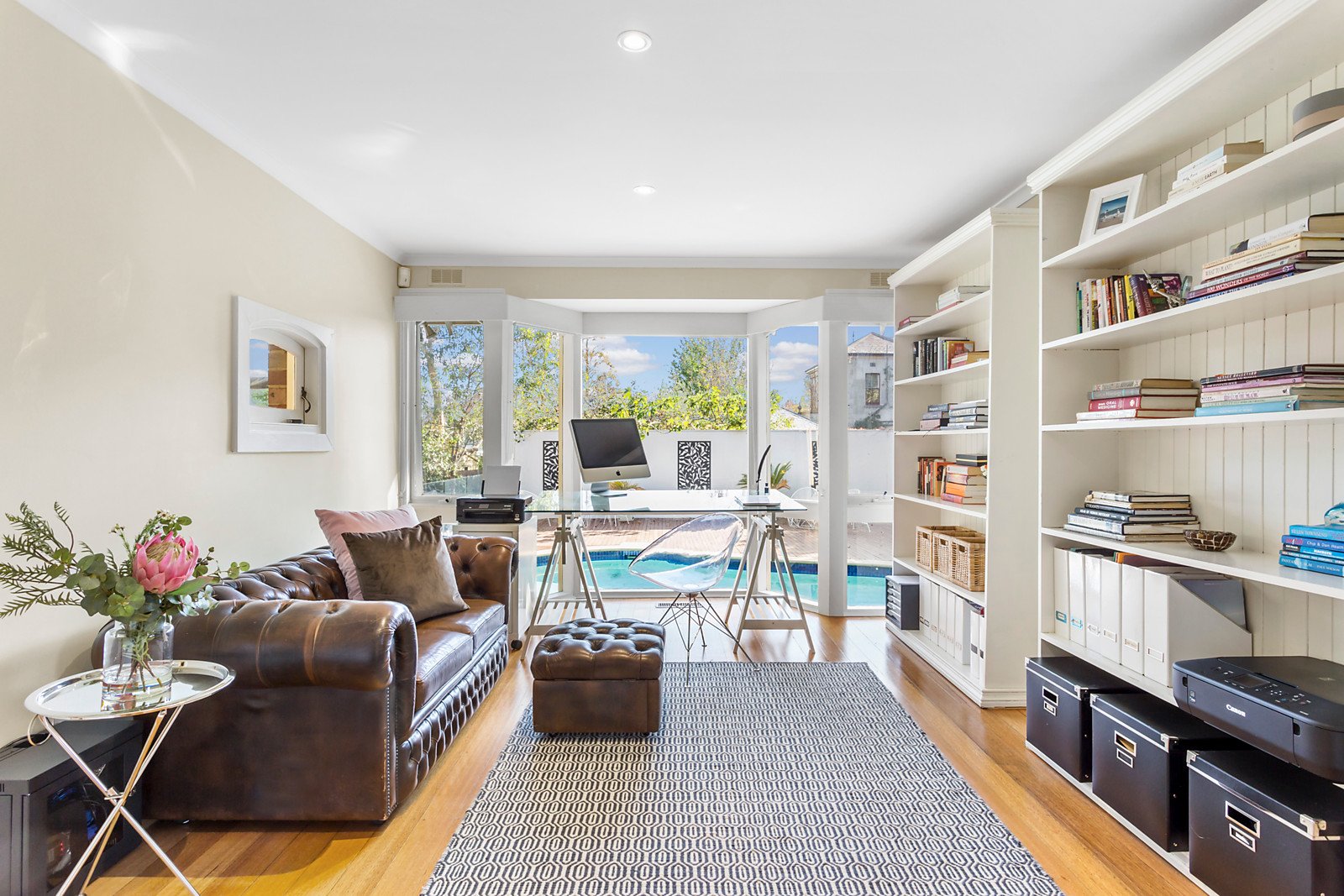 A further five bedrooms (one with private balcony) and two vogue bathrooms are found upstairs, along with access to a rooftop viewing platform revelling in a 360 degree vista incorporating the CBD and surrounds. Moving beyond a sumptuous library with gas log fire, the modern open living/meals space and high-end marble kitchen (with walk-through pantry to the formal dining room) all enjoy a broad view across the full-width, all-weather alfresco zone to a private leafy garden and sparkling heated pool surrounded by decking.