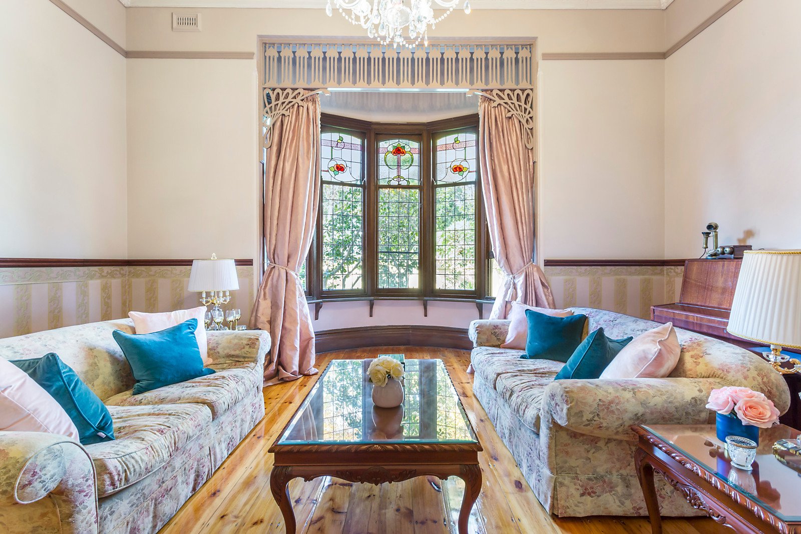 Introduced by a magnificent reception hall adorned with leadlight door panels, soaring 14-foot ceilings crowned with pressed metal, a chandelier, textured wall panelling and tessellated tiles, the splendid period features continue as glossy Baltic Pine floors flow throughout the formal areas of the home, including a stunningly spacious lounge with bay window and fireplace, an equally impressive dining room, regal study and stately front bedroom serviced by an adjacent bathroom with clawfoot bath.