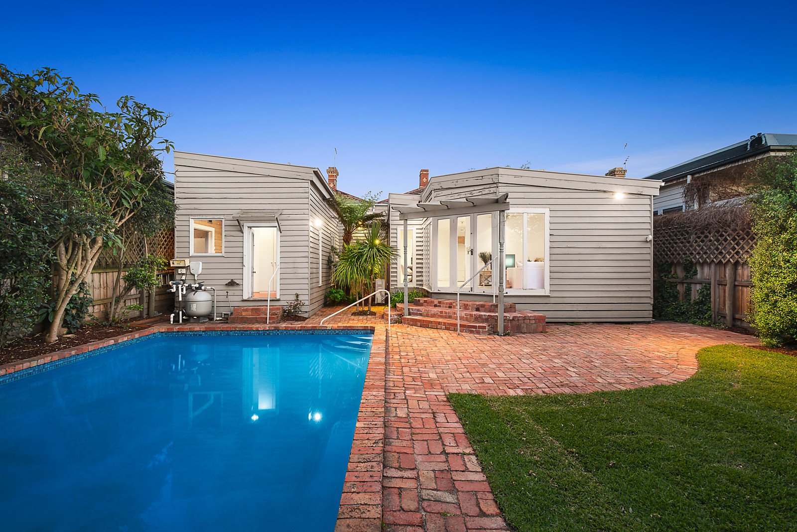 Behind the captivating block-fronted exterior, a wide arched hallway featuring high ceilings introduces a beautiful main bedroom with marble fireplace, built in robe and en suite/bathroom, a second bedroom with marble fireplace and built in robe, two additional bedrooms with robes and a second bathroom. An elegant sitting room with open fire complements the light-filled dining area with well-appointed kitchen and a generous living room opening to the private northwest garden with pool.