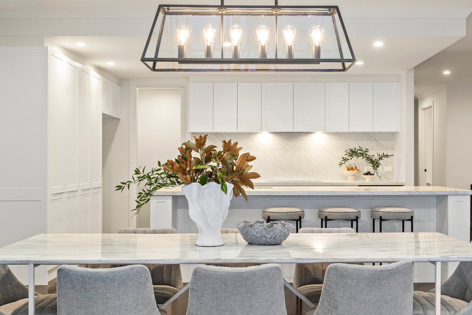 Setting the tone with an impressive facade framed by ornamental pear trees, magnolias and buxus hedging, this exquisite contemporary residence showcases luxurious proportions that cater effortlessly to the demands of modern day living.