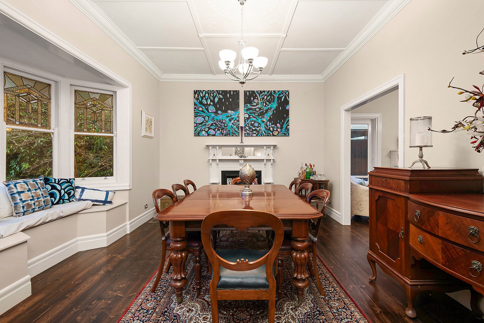 The classic Californian Bungalow façade reveals interiors featuring ornate ceilings, dark stained Baltic pine floors and leadlight windows. A central hallway flows through to a gracious dining room with beautiful bay window and open fire and an adjacent sitting room also with a fireplace. The gorgeous main bedroom with walk in robe and stylish en suite/bathroom is serenely set apart from a children's wing comprising three additional bedrooms with built in robes and a bathroom. At the heart of the home, a gourmet kitchen appointed with a 90cm Smeg oven and stone benches serves a generous family room that extends out to a large covered entertaining deck overlooking the very deep private, leafy garden.