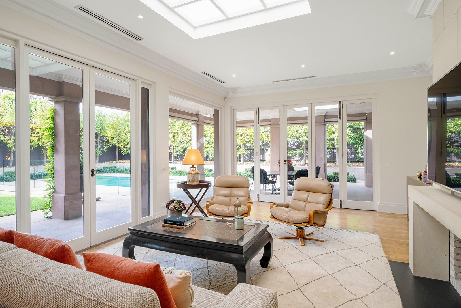 Set amongst the most prestigious homes in Melbourne's premier location, this architecturally designed residence by Christopher Doyle, interiors by Stuart Rattle & surrounded by Paul Bangay gardens is constructed to exacting standards with immaculate attention to detail offering an uncompromised lifestyle. Upon entering the breathtaking limestone atrium, the abundance of natural light emphasising the beautiful proportions of this residence defines the ultimate in contemporary sophistication. Comprising formal sitting & dining rooms each with gas OFP, den/home office, and a striking Calcutta marble kitchen adjoins substantial casual living & dining areas opening to the rear garden complete with a heated in-ground pool & covered entertaining area with a gourmet BBQ pavilion. Upstairs, the vast main bedroom features extensive WIRs & marble ensuite, and the three further spacious bedrooms each feature marble ensuites and robes. Fitted & finished to lavish echelons, this extraordinary home is enhanced with stunning French Oak flooring, multi-zone heating & cooling, full video security, and remote garaging for 4 cars.