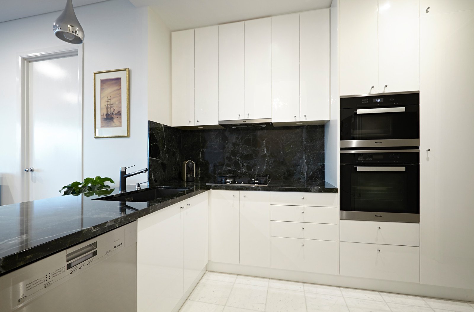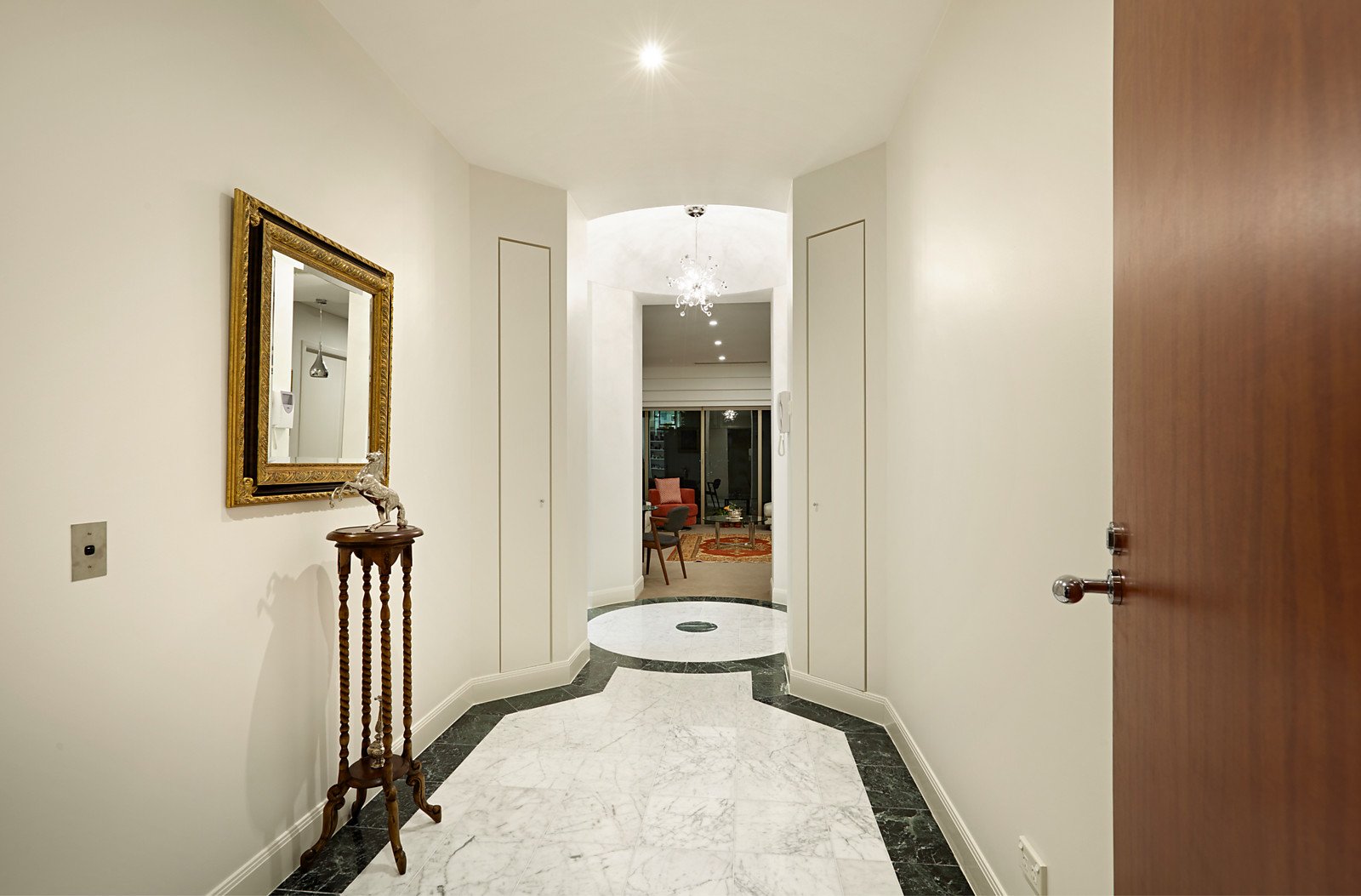 An elegant marble vestibule with domed ceiling introduces a study, gourmet kitchen boasting marble benches and Miele appliances and a generous living and dining room with covered balcony enjoying wonderful water and parkland views. Two enormous separate bedrooms, also offering glorious outlooks, are both appointed with marble en-suites and built/walk in robes.