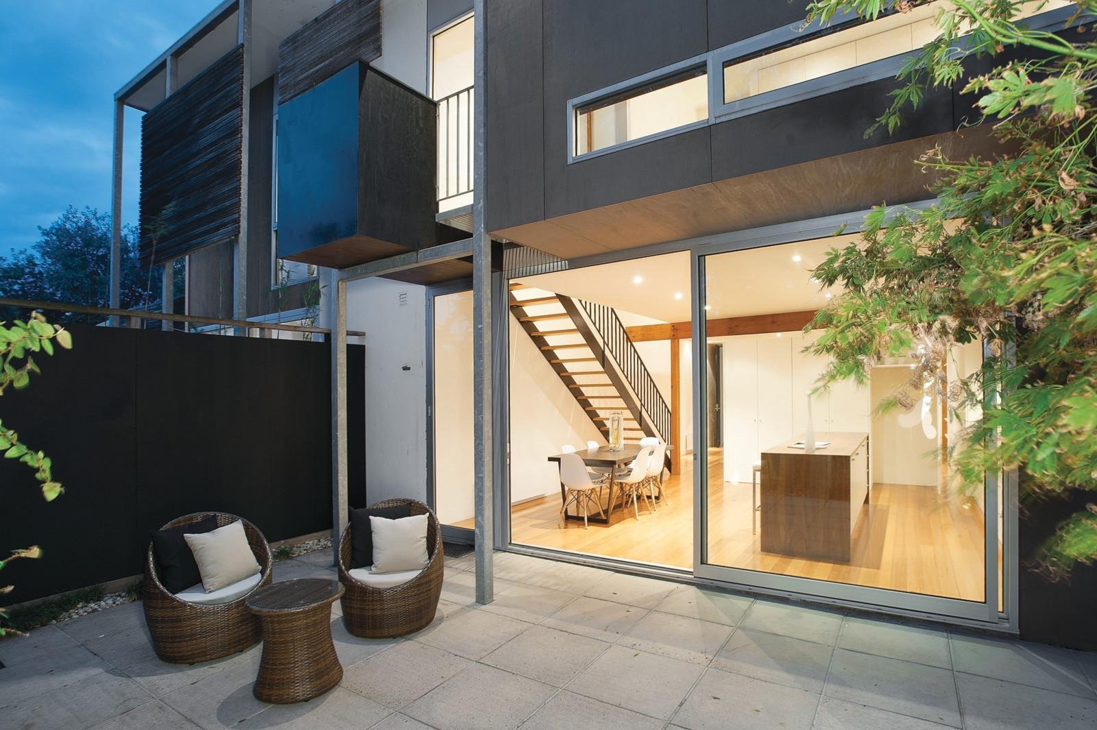 The creative concepts and inspired ideas that are the hallmarks of internationally renowned architect Sean Godsell are beautifully expressed by this timeless townhouse residence in an exclusively designed development of only four. Framed by elegant landscaping and a private, inviting outdoor backdrop, superb downstairs dimensions include a large living/dining domain and a light filled separate kitchen/everyday dining area featuring an island bench, stylish jarrah and stainless steel surfaces and European appliances. Walls of sliding glass create seamless links to the private courtyard while a fitted study/home office illustrates the intelligence of this outstanding residence. Upstairs, a main bedroom with balcony and ensuite sets the luxury level for two further bedrooms sharing a central second bathroom. Generous double garage, complete privacy, compelling appeal - all literally moments' walk from all the attractions that define Ormond Road's desirability