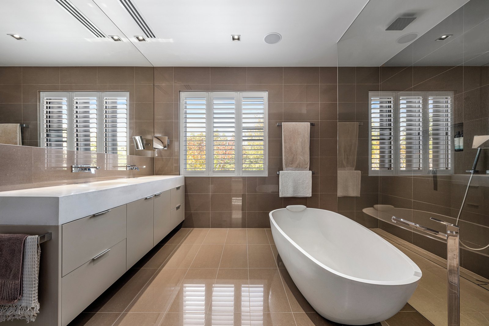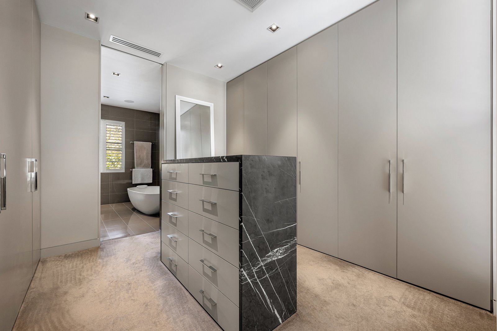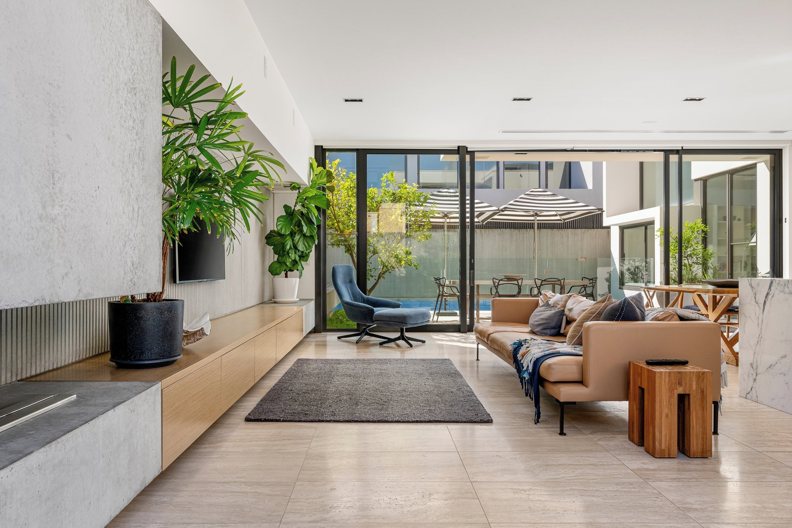Inside, you'll find premium finishes like white oak floors, Calacatta and Maquino marble and solid feature concrete walls, adding to the overall sense of refinement.