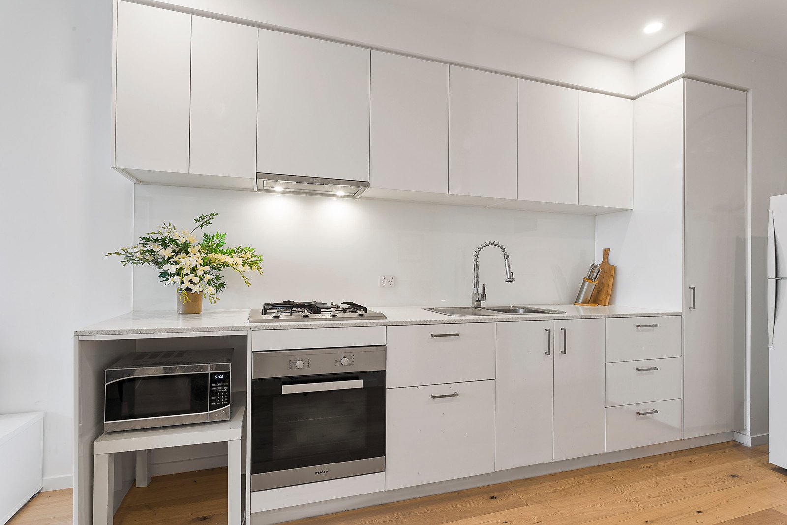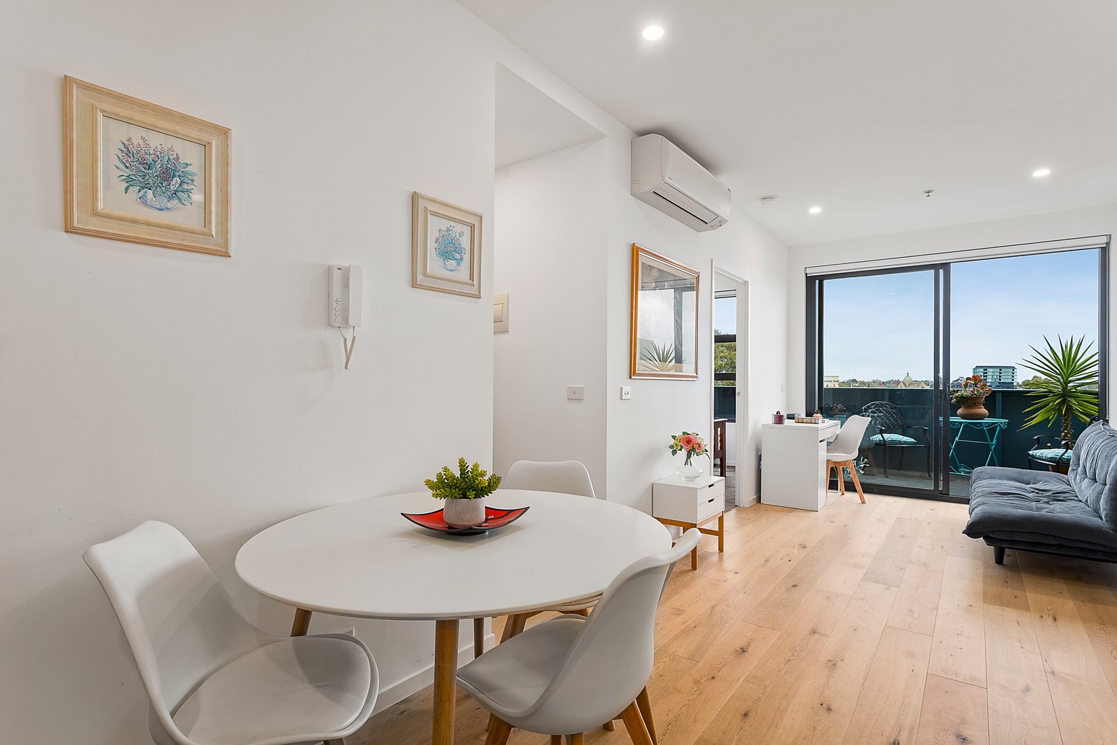 A free-flowing living and meals area incorporates a galley-style kitchen in which CaesarStone benchtops, volumes of two-pack cabinetry and Miele appliances form a superb combination to satisfy any home chef. Meanwhile, double-glazed sliding doors open to a wonderful balcony with views of Hawthorn East, Camberwell Junction and city skyline, in a home with a large study that could readily be used as a possible additional living/dining room. Boasting an European laundry, secure video entry, basement parking with a storage cage and split system heating/cooling.