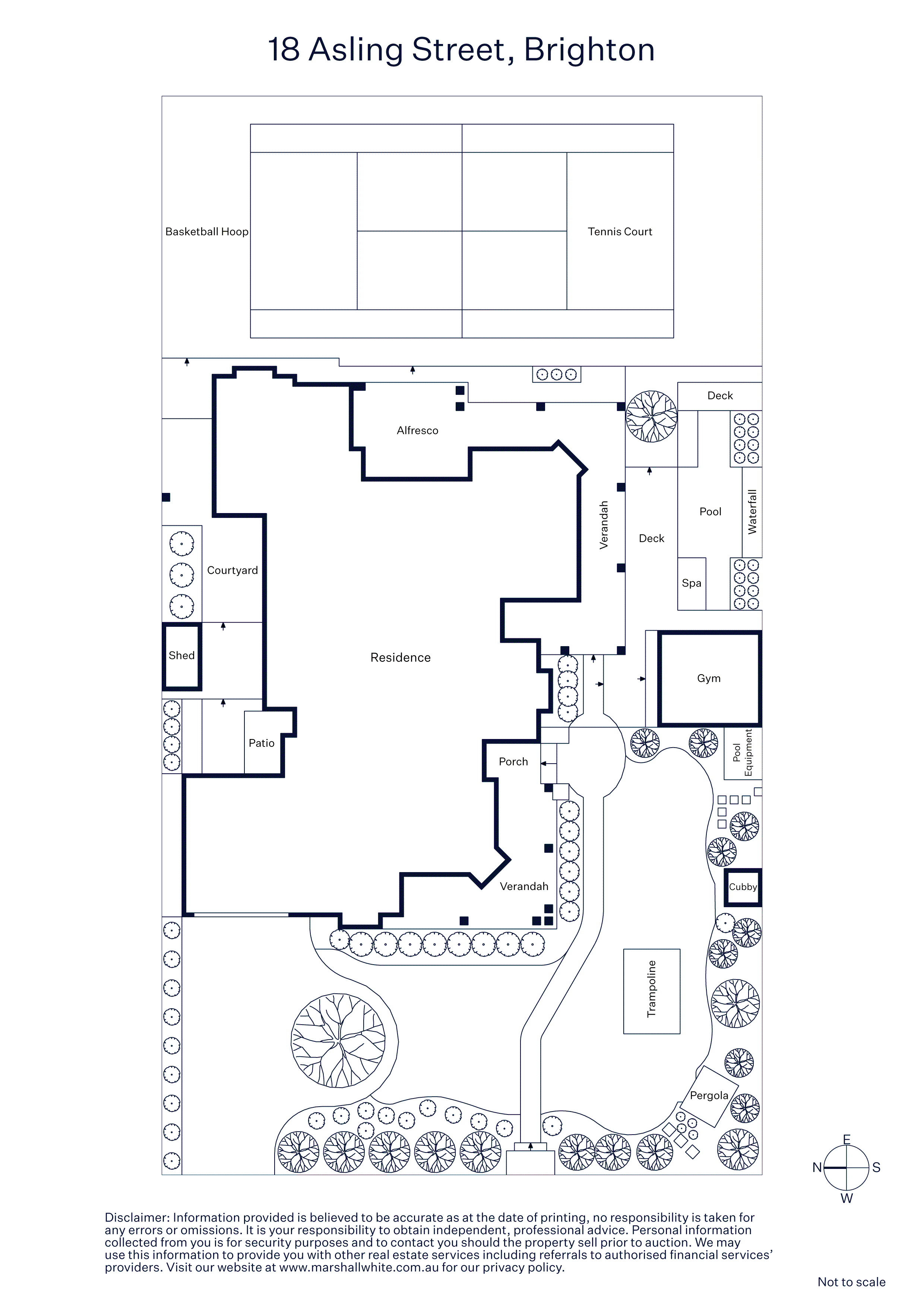 Privately set behind automated gates on blue-chip land measuring almost half an acre (1,758sqm*), you are welcomed into the lavish resort-style home with designer gardens, lush lawns and a majestic Palm Tree. The outdoor living and leisure amenities include a flood-lit, north-south tennis court with basketball hoop, a fully tiled heated pool and spa, a cabana/gym with steam room, outdoor shower, an inground trampoline and a cubby house.