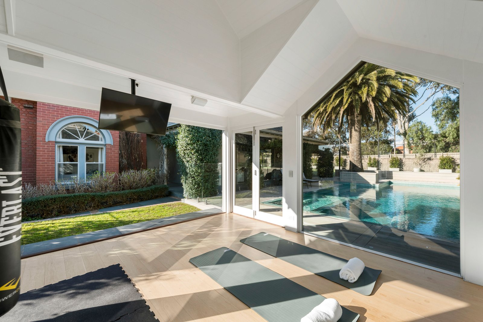 The home’s splendid façade of hand-made Queen Anne tuck-pointed bricks celebrates the optimism and grandeur of the Federation era, a theme that carries through to the palatially proportioned interiors, resplendent with intricate plasterwork, domed ceilings, elegant archways, and leadlight windows. The 21st-century architectural extension is a triumph of expansive open-plan living and indoor/outdoor connectivity while American Oak hardwood flooring brilliantly melds the old with the new and the formal with the informal.