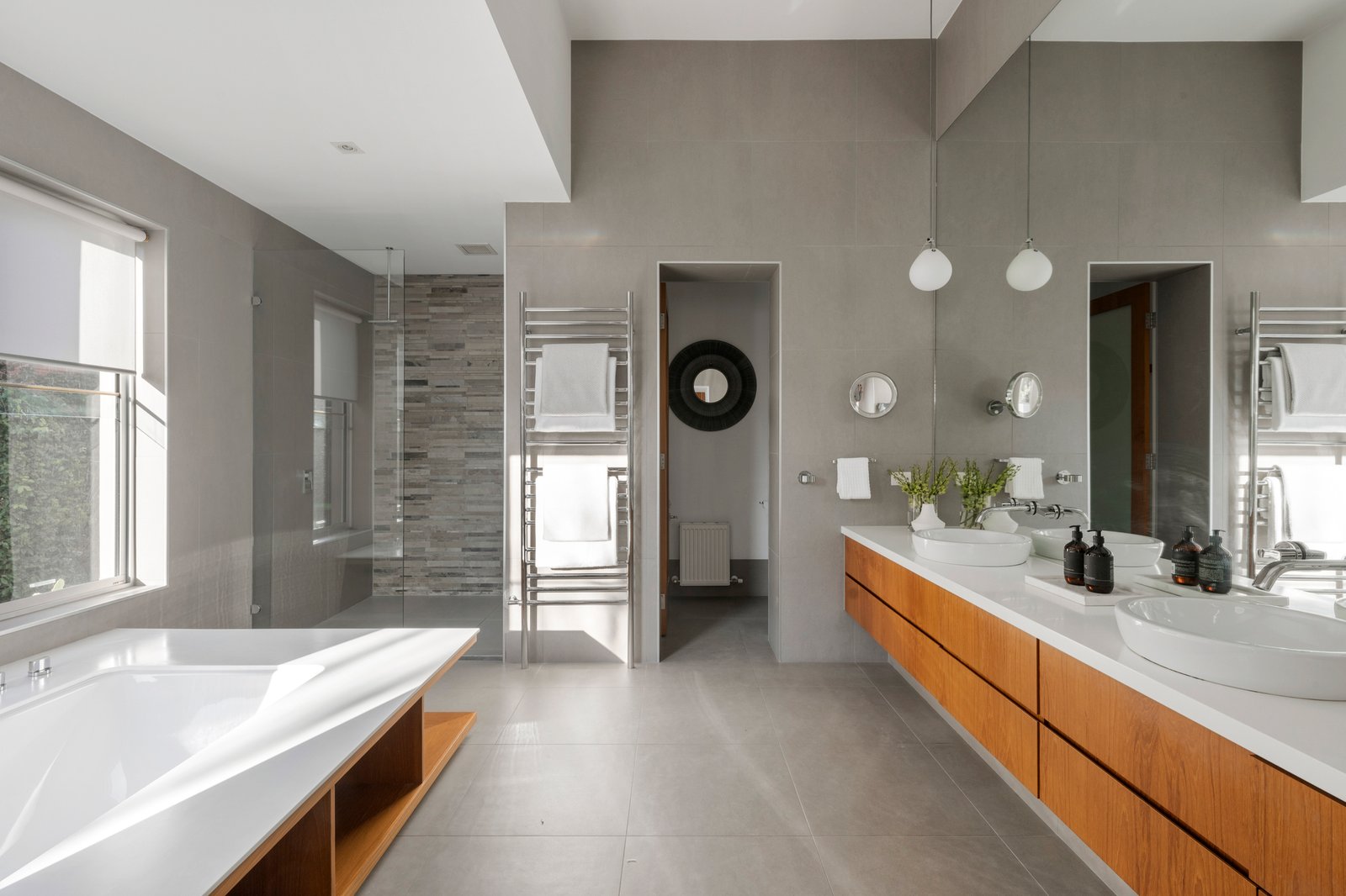 Additional features include ducted vacuum sweepers, hydronic heating, gas ducted heating and central cooling, a laundry drying cabinet, gas and wood fireplaces, a security alarm system, secluded privacy, home automation, video intercom, integrated sound system, off-street parking for 5 cars, fully automated self-cleaning pool and garden irrigation.