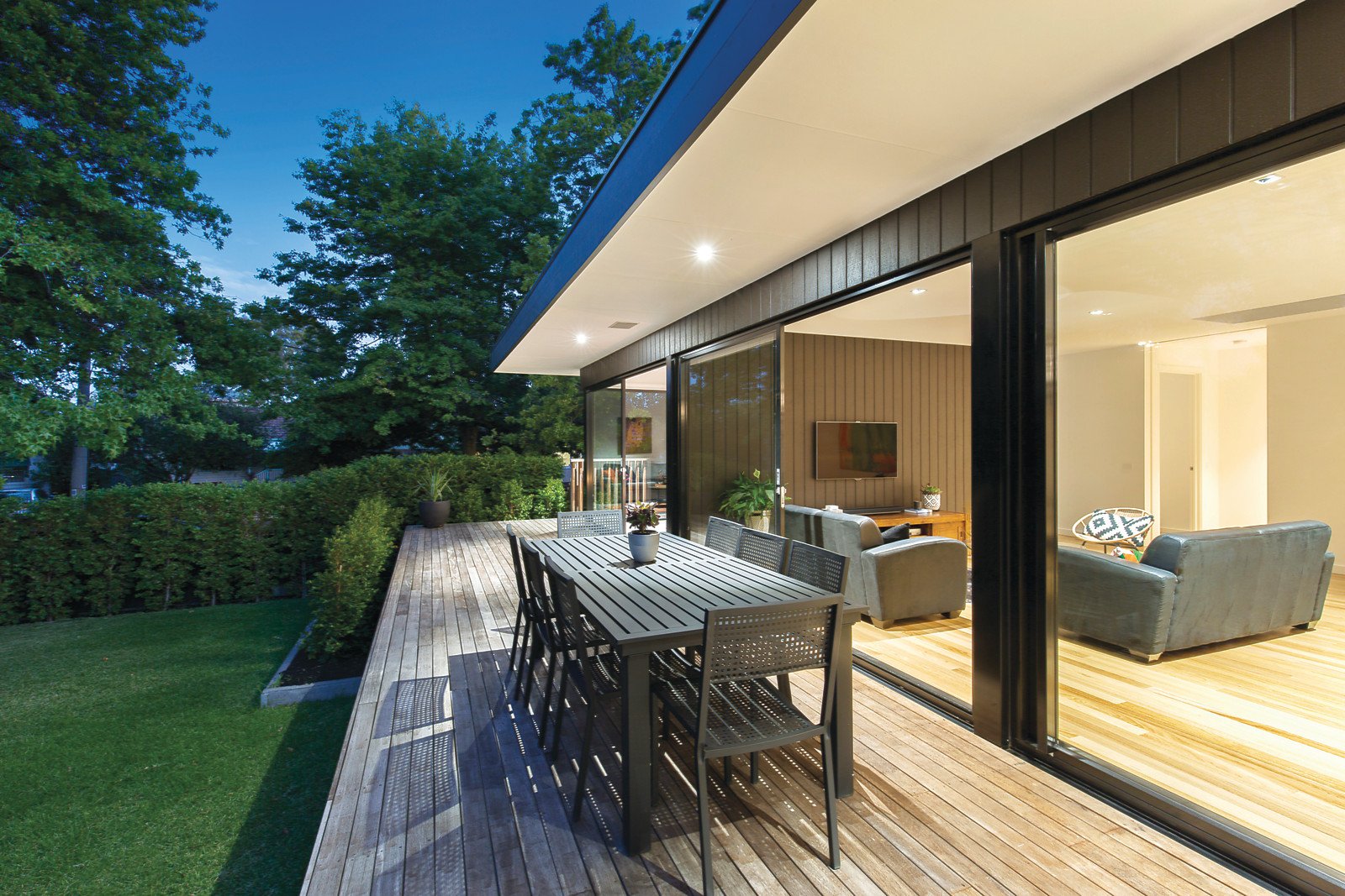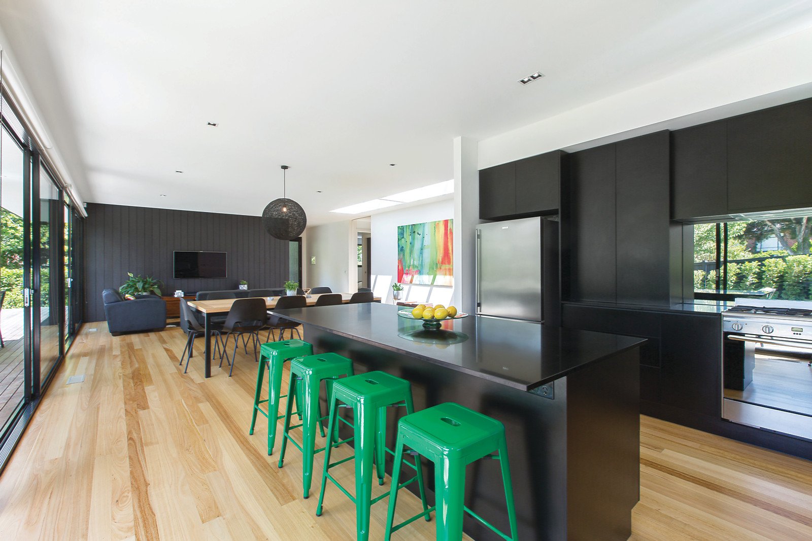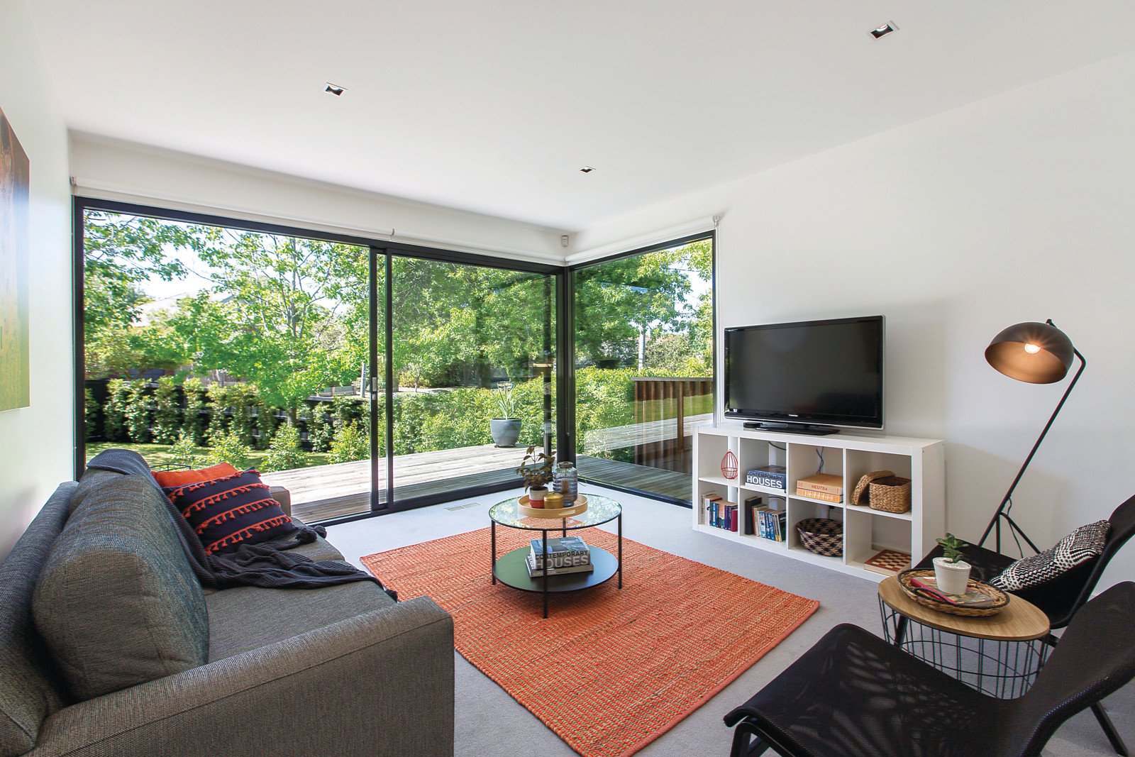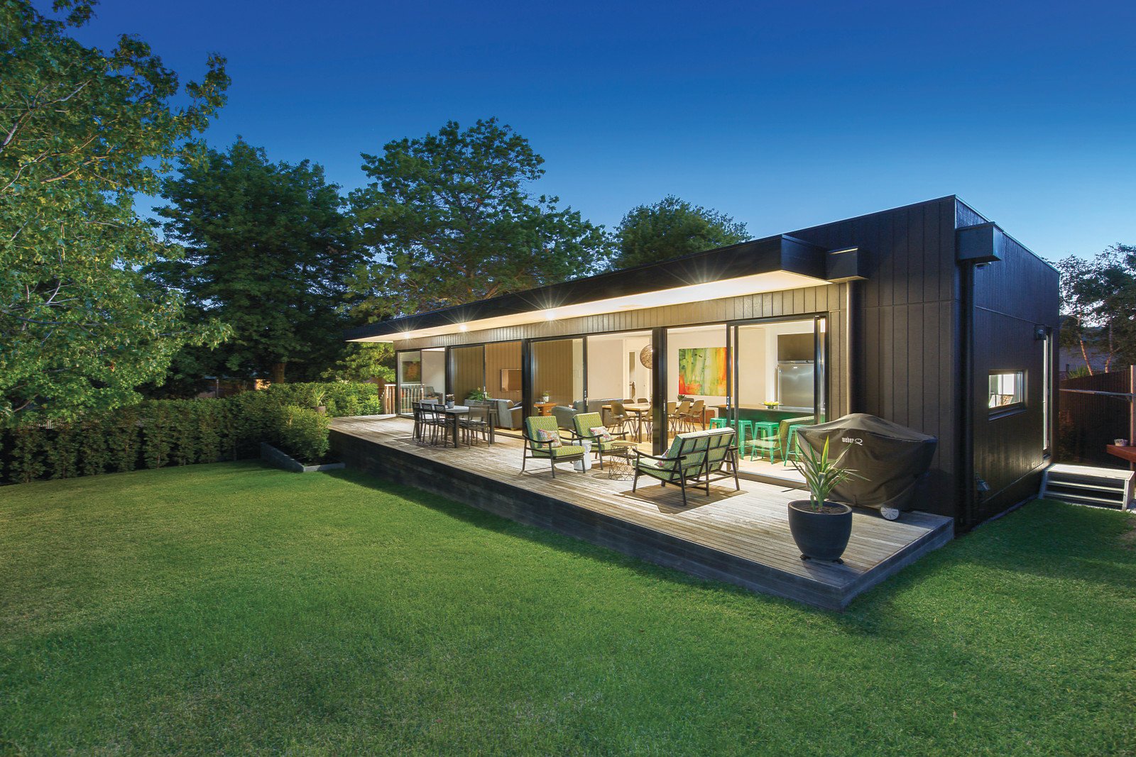 Inspired by mid century modernist principles, this Nigel Grigg designed three bedroom home is the very epitome of elegant contemporary simplicity with an indoor/outdoor focus. Carefully crafted to maximize its sunny 650 sqm (approx) corner, its fabulous approach to family living uses a pavilion style design where walls of glass doors not only ensure a beautifully bright and airy feel throughout, they offer a seamless transition to alfresco entertaining amid the perfectly private northern garden. Crisp architectural lines, sleek stone finishes and a mainly monochrome colour palette are kept wonderfully warm and inviting by textural interiors that include clever feature skylights, hardwood timber floors and gorgeous garden views. Behind an elevated entry, a spacious sitting domain, easily adaptable as a fourth bedroom, shares the sliding glass walls and doors with open plan family zones that completely retract to a deep wall to wall alfresco deck. Within this space, an impressive entertainer's kitchen featuring black stone benchtops, push to open cabinetry and large freestanding oven serves with smart finesse. In their own zone with an open study, three generously sized bedrooms with built in robes share a stunning family bathroom, the larger main with extensive built in robes/ storage and luxurious ensuite. Ducted heating/refrigerated cooling, expansive underhouse storage, water tank, dual undercover parking and additional off street parking complete an unforgettable family lifestyle environment in a sought after pocket close to high performing schools, Deakin University, Wattle Park, cafes and Riversdale Road trams.