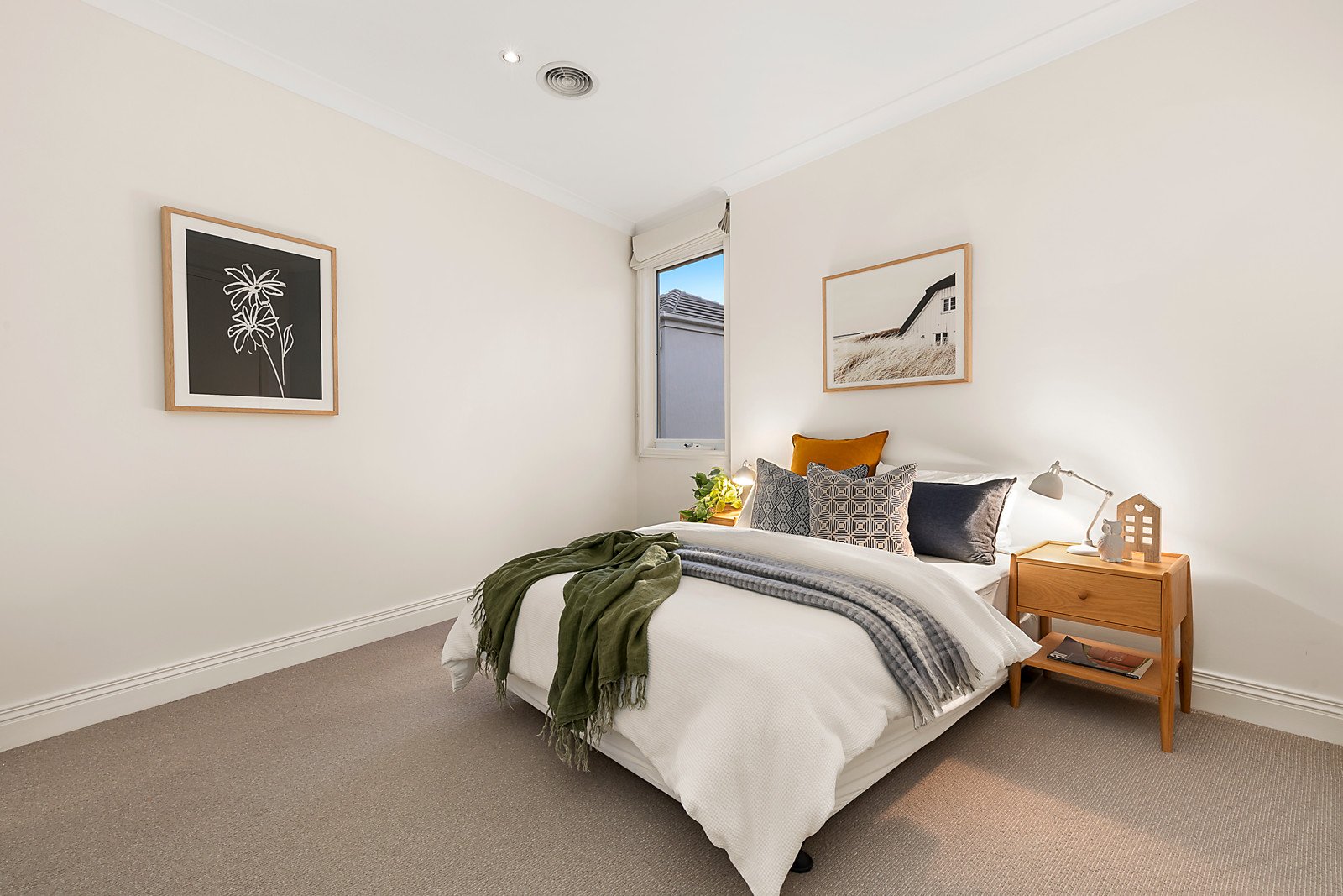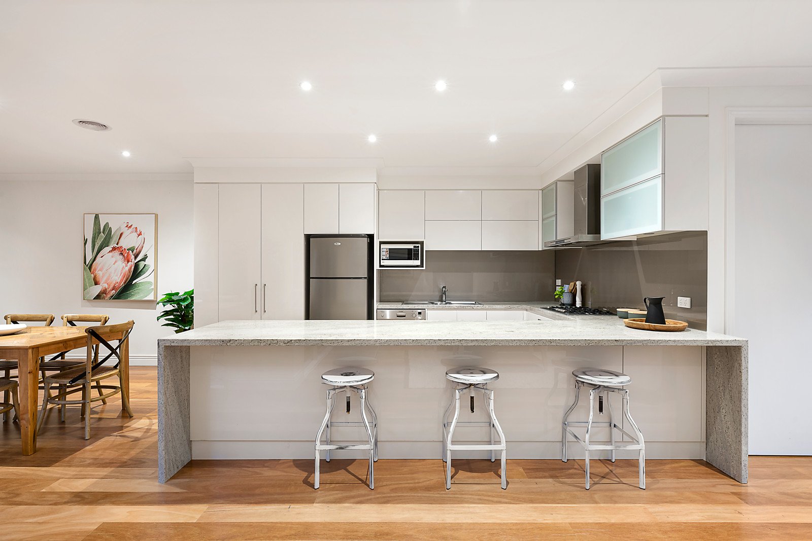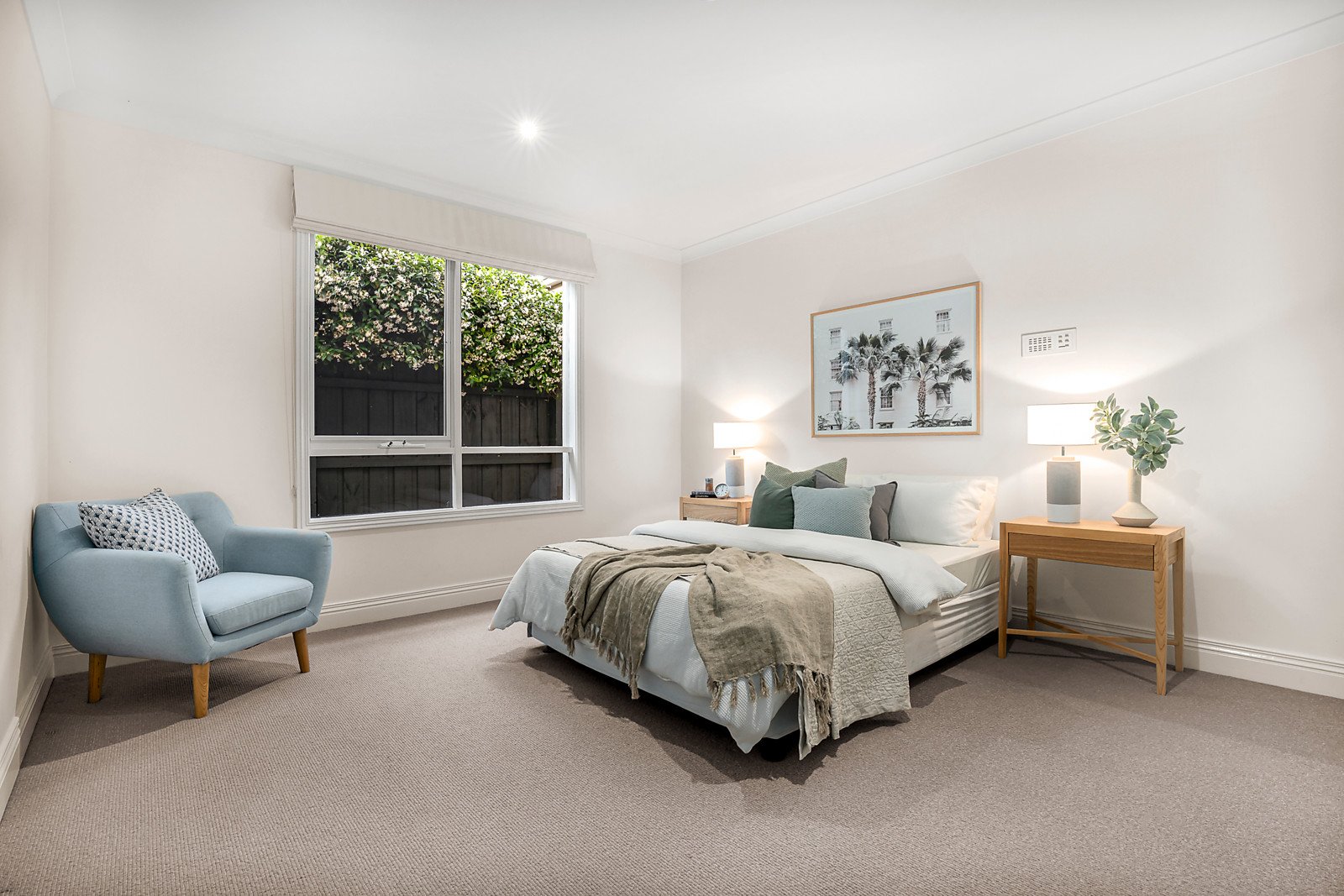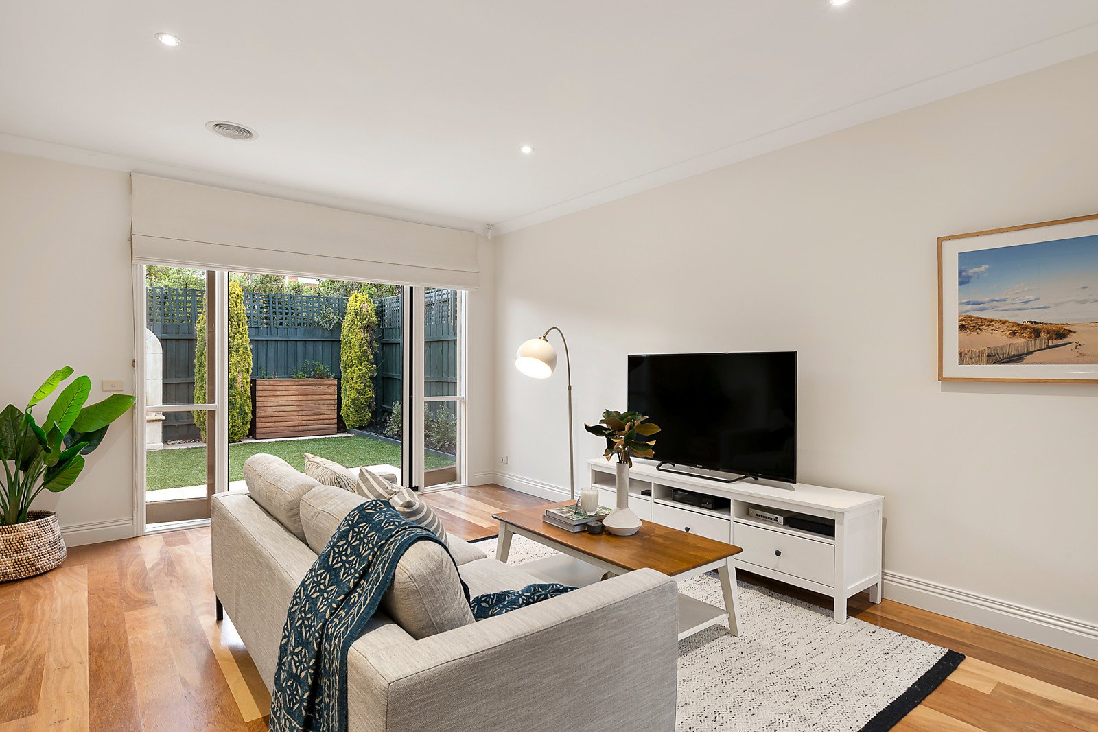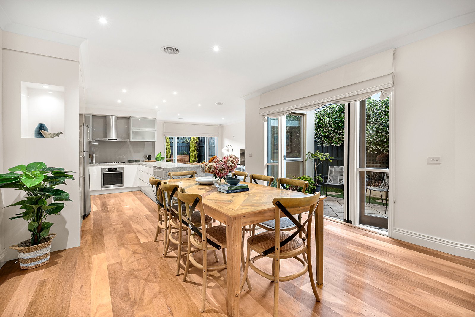 With sophisticated style and a distinctly contemporary feel, this elegant townhouse provides spaciousness in grand proportions and relaxed living across two levels. Leafy surrounds, refined fittings and a superb Bayside position combine to create a home with incredibly broad ranging appeal. A generous open floorplan with two living areas and dining area that open out through French doors to two separate courtyards, enhanced by greenery and perfect for alfresco dining and entertaining. The superbly appointed kitchen features granite benchtops and quality appliances including gas cooktop, oven and Bosch dishwasher. Enjoy the flexibility of having an ensuite main bedroom on each floor, accompanied by two additional sizeable bedrooms with robes and a family bathroom upstairs. Heating and cooling throughout and a secure double garage complete the home. The home is set on a peaceful street in Brighton East, within walking distance to Bay Street and Church Street cafes and shops, excellent schooling, parks and close proximity to the bay.