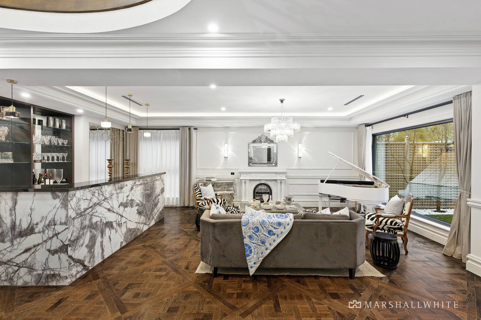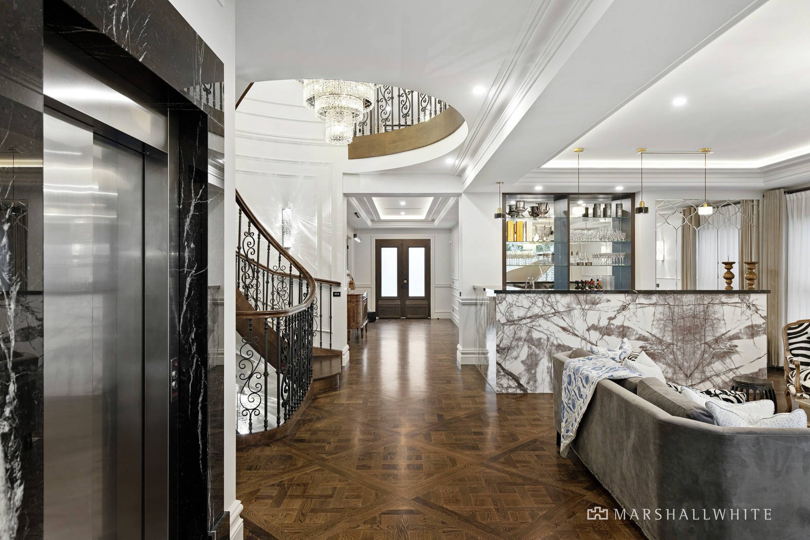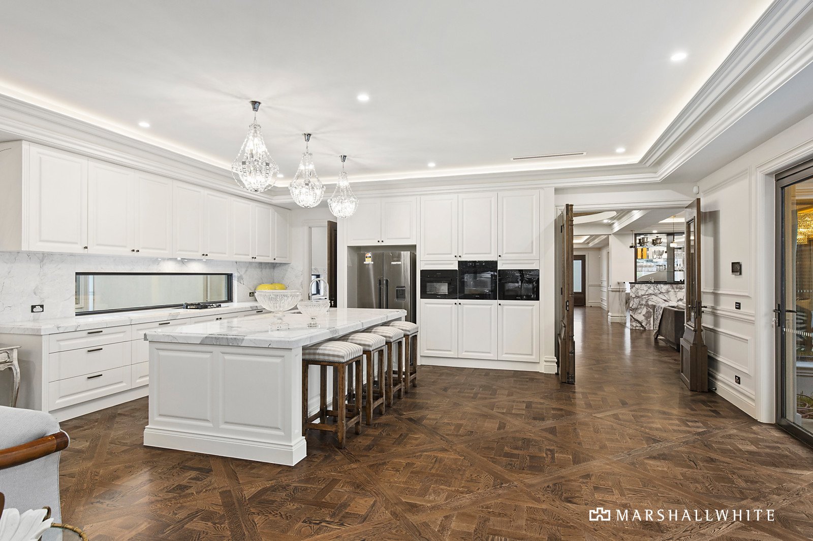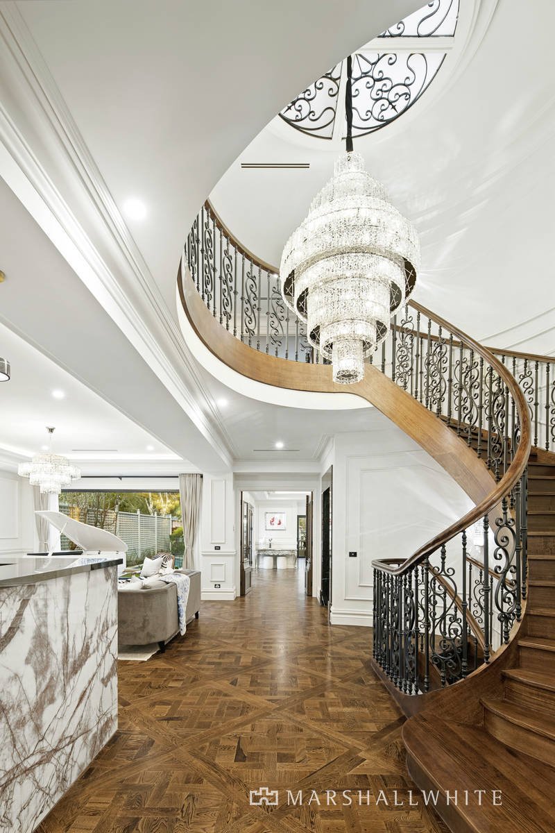 Further highlights in this luxuriously finished residence include a four-car basement garage, walk-in or built-in robes in each bedroom, Cbus technology, video entry, home security, crystal chandeliers, central and zoned heating and air conditioning as well as another two powder rooms.