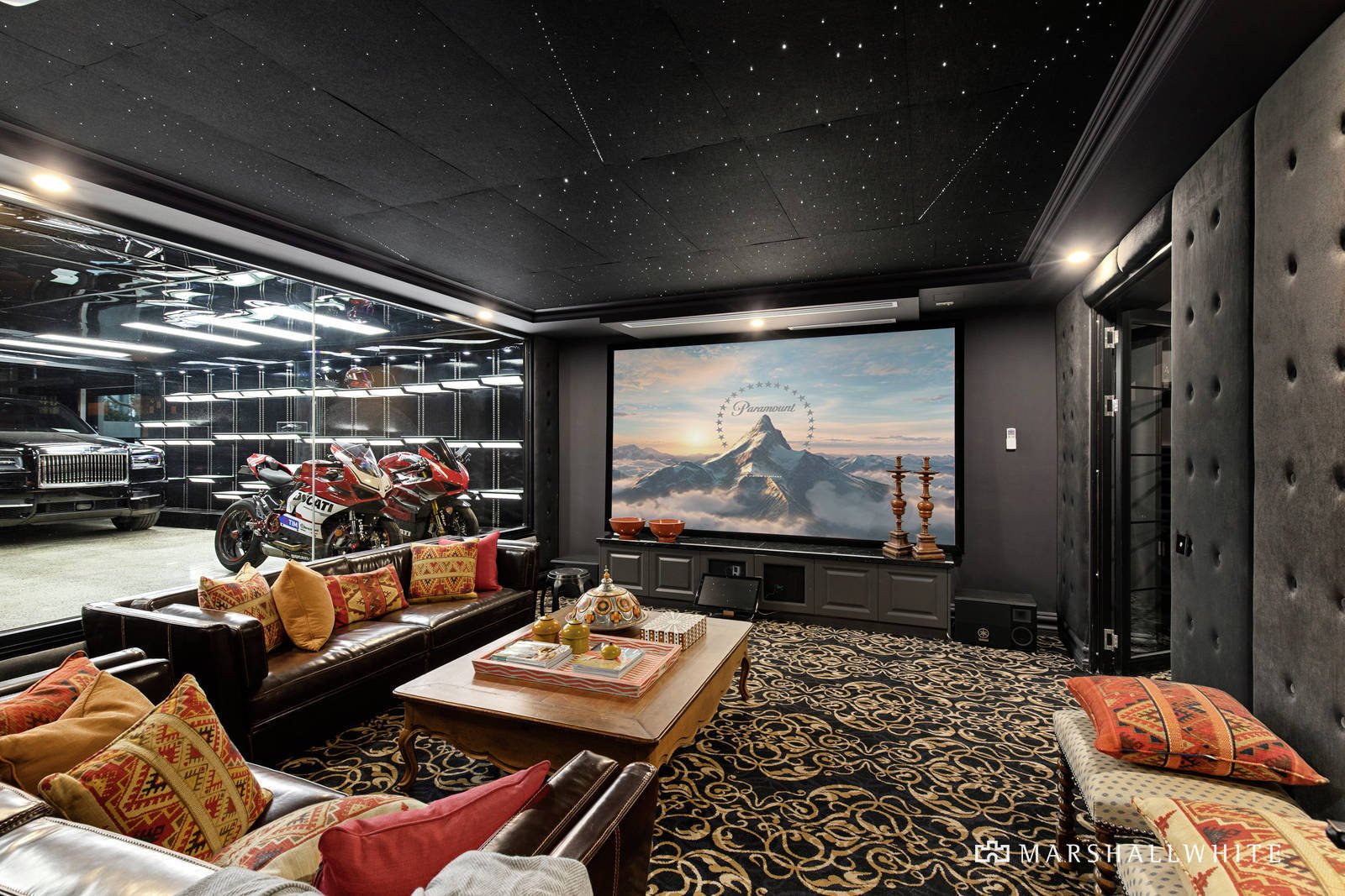 Take the elevator upstairs to discover another living area that has also been designed to overlook the swimming pool and outdoor entertaining. Or take it downstairs to a purpose-built home cinema and a wine cellar with tasting area.