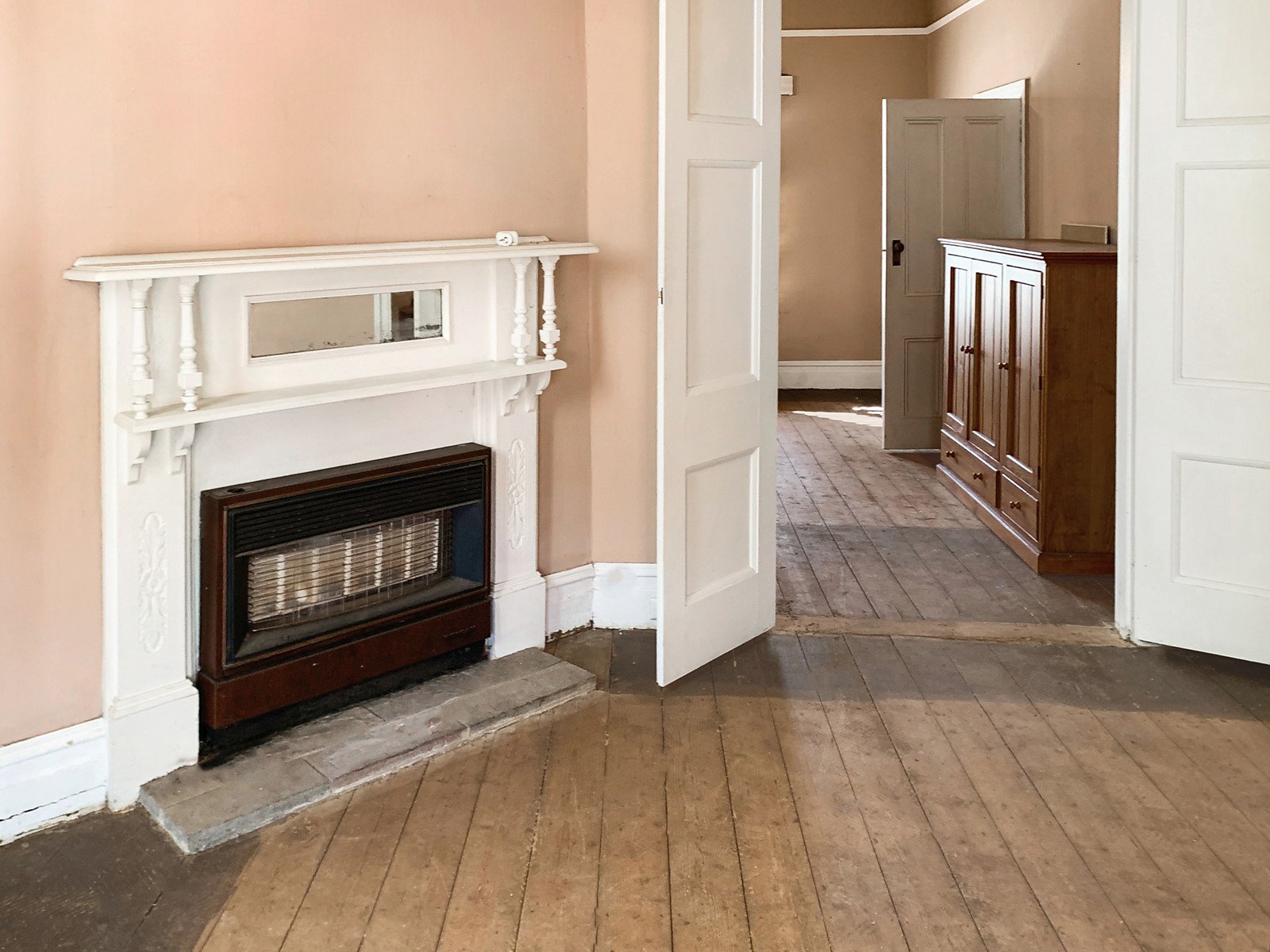 While many original features including Baltic pine floors throughout have been retained, bathrooms and kitchens have been decommissioned. It's a blank canvas to restore and extend or to begin again from scratch. Currently the floor plan comprises a study, gracious sitting room with fireplace, a dining room and former kitchen area on the ground level. Upstairs there are four bedrooms and a former bathroom. The deep northwest garden includes an empty pool, shed and storeroom.