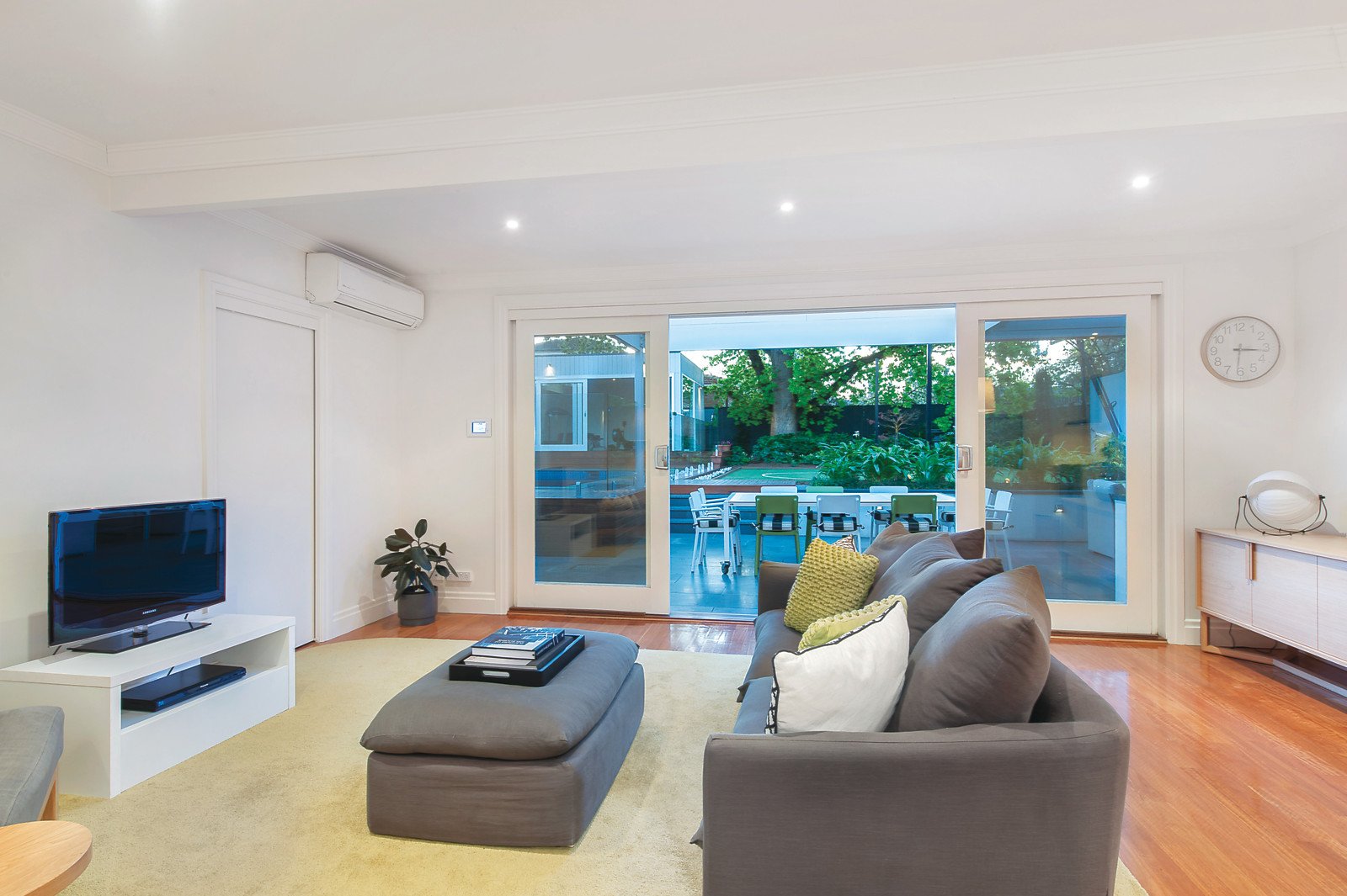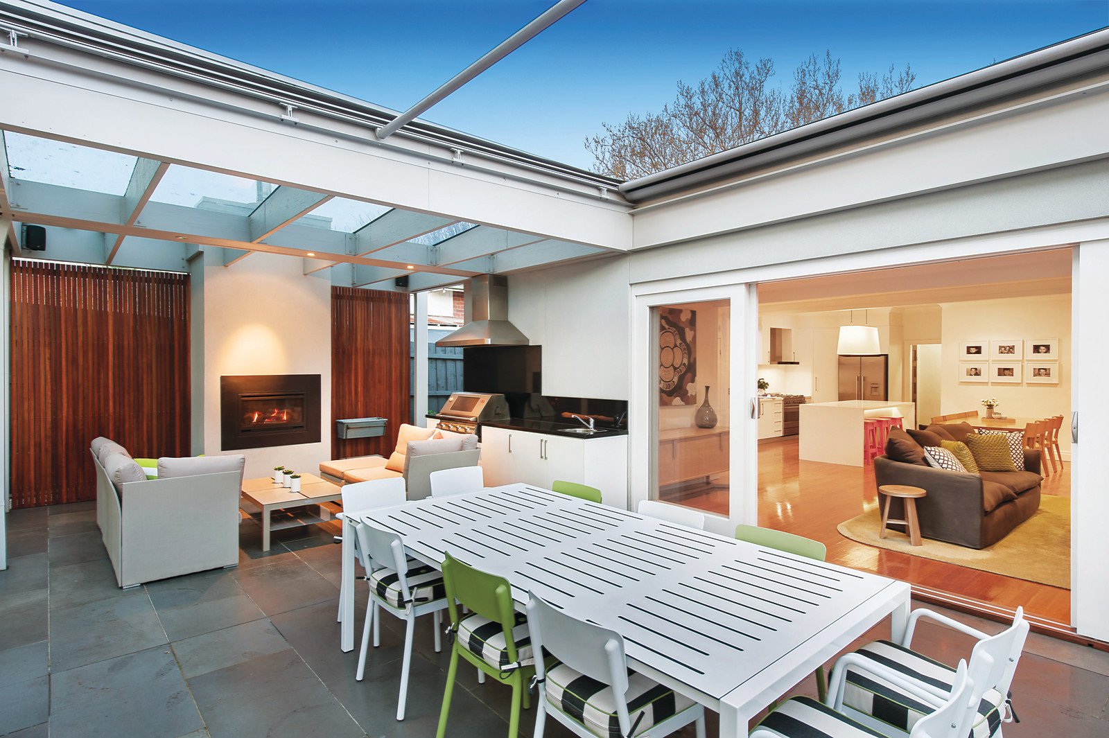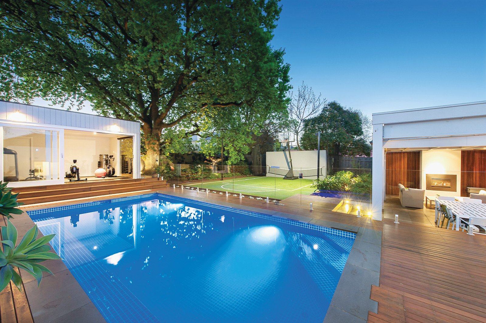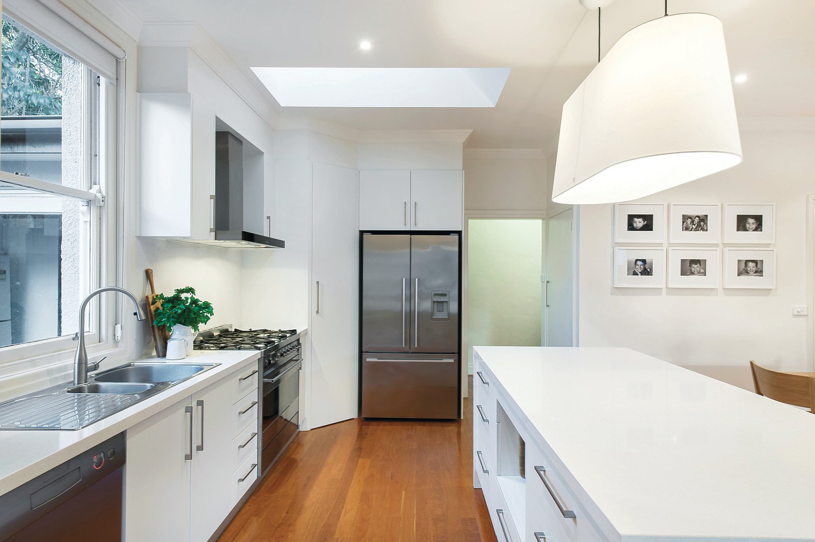 Wonderful period character including high ceilings and timber floors are featured in the central hall and refined sitting room with open fireplace. Superbly zoned accommodation comprises four spacious bedrooms and two stylish bathrooms. Timber floors flow through the impressively proportioned living and dining room with a sleek white stone gourmet kitchen opening to the breathtaking west-facing private garden complete with large covered bluestone terrace with BBQ kitchen and gas fireplace, mod-grass sports court, heated self-cleaning pool and a freestanding studio or 5th bedroom with bathroom.
