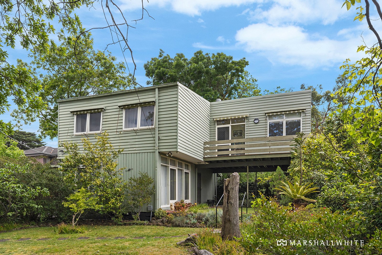 Peacefully cast behind a sheltering canopy of established trees, on an extraordinary allotment, this architecturally brilliant, John and Phyllis Murphy designed, five-bedroom home is a light-filled icon of the mid-twentieth century.