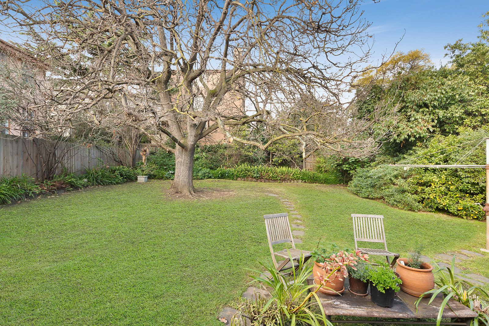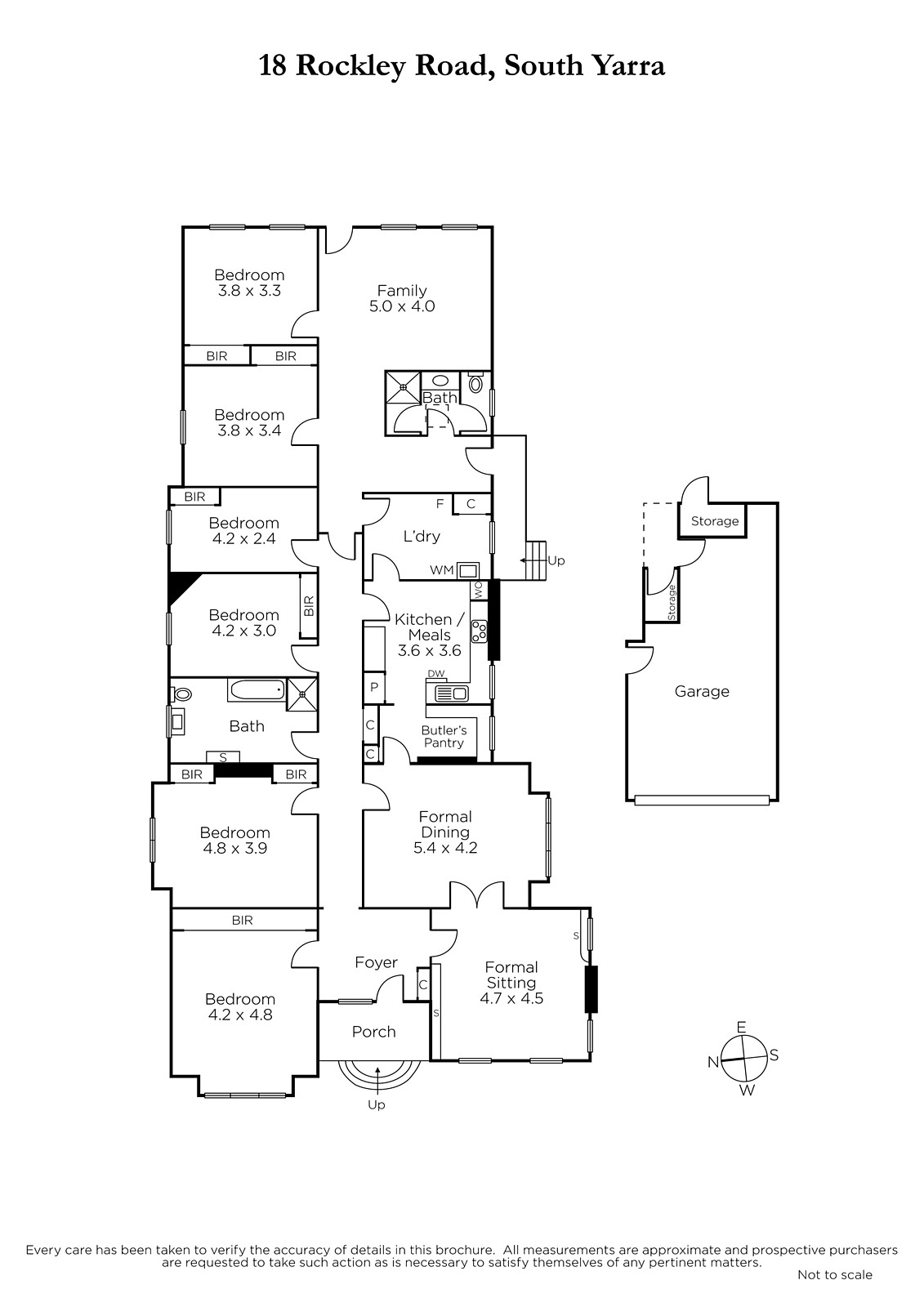 Gracious proportions define the central hall, elegant sitting room, grand formal dining room and well-equipped kitchen with butler's pantry. There are also six spacious bedrooms, two bathrooms, a laundry and a light-filled living room opening to the deep private northeast garden with large garage.