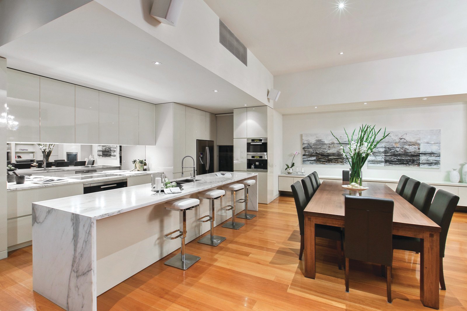 From the bespoke finishes and generosity of scale to the designer style and sensational outdoor environs, every element of this utterly captivating solid brick Victorian residence combine to create an unforgettable single level family domain. While Baltic pine floors, open fireplaces and high ceilings convey classic Victorian architecture, streamlined cabinetry and marble finishes throughout add an understated luxury and contemporary edge. The wide arched entrance hall introduces the glorious main bedroom with marble en-suite and built in robe, four beautiful bedrooms with built in robes, two stunning marble bathrooms and a generous retreat/2nd living room. Ultra high ceilings accentuate the wonderful sense of space in the open plan living and dining room with a gas log fireplace and sleek marble kitchen boasting Miele appliances including a coffee maker. The living areas surround a private north-facing bluestone paved terrace with picturesque heated self-cleaning pool and BBQ (natural gas plumbing). In a prized location walking distance to Malvern station, Glenferrie Rd shops and schools, it is comprehensively appointed with alarm, security intercom, audio-wiring, hydronic heating, pool has both separate gas and solar heating, laundry, outdoor shower, auto gates and garage. Land 580sqm (approx.)