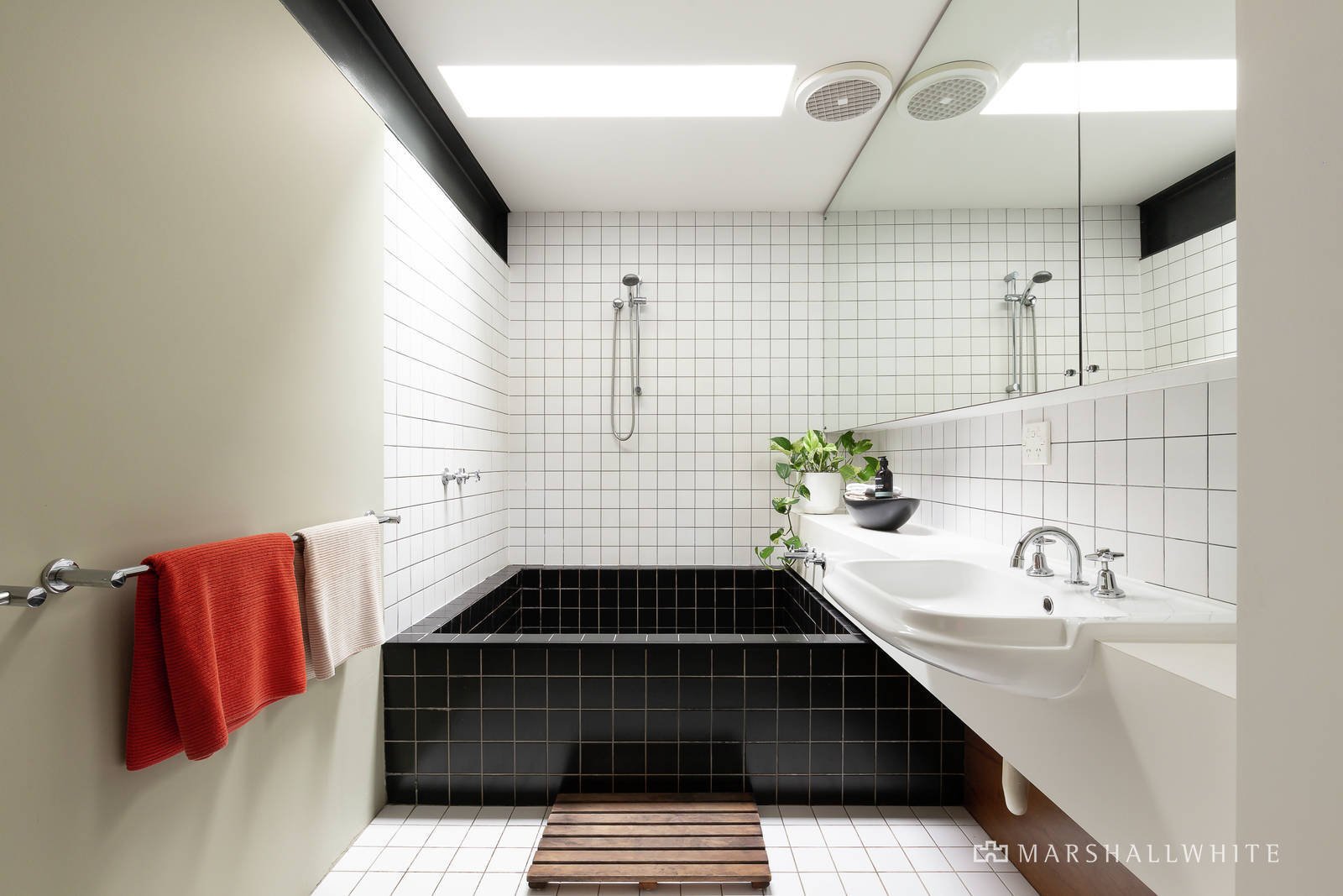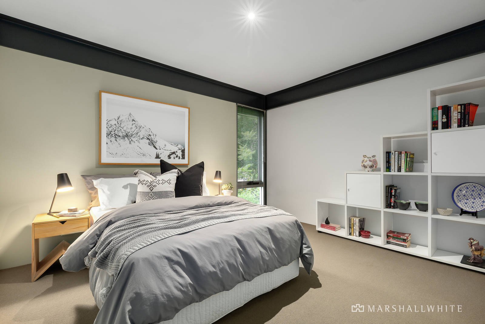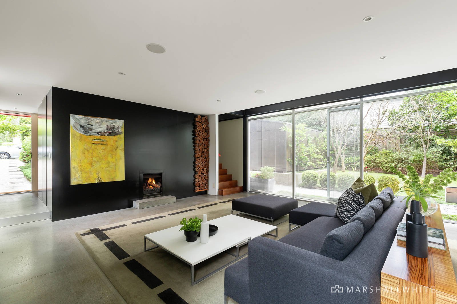 furthermore it retains its contemporary and passive solar design features to this day. Boasting simple lines, varying ceiling heights to the upper level and generous spaces which flow throughout the light-filled interior overlooking lush and tranquil gardens with rows of mature trees plus outdoor entertaining areas overlooking a square, gas-heated pool.