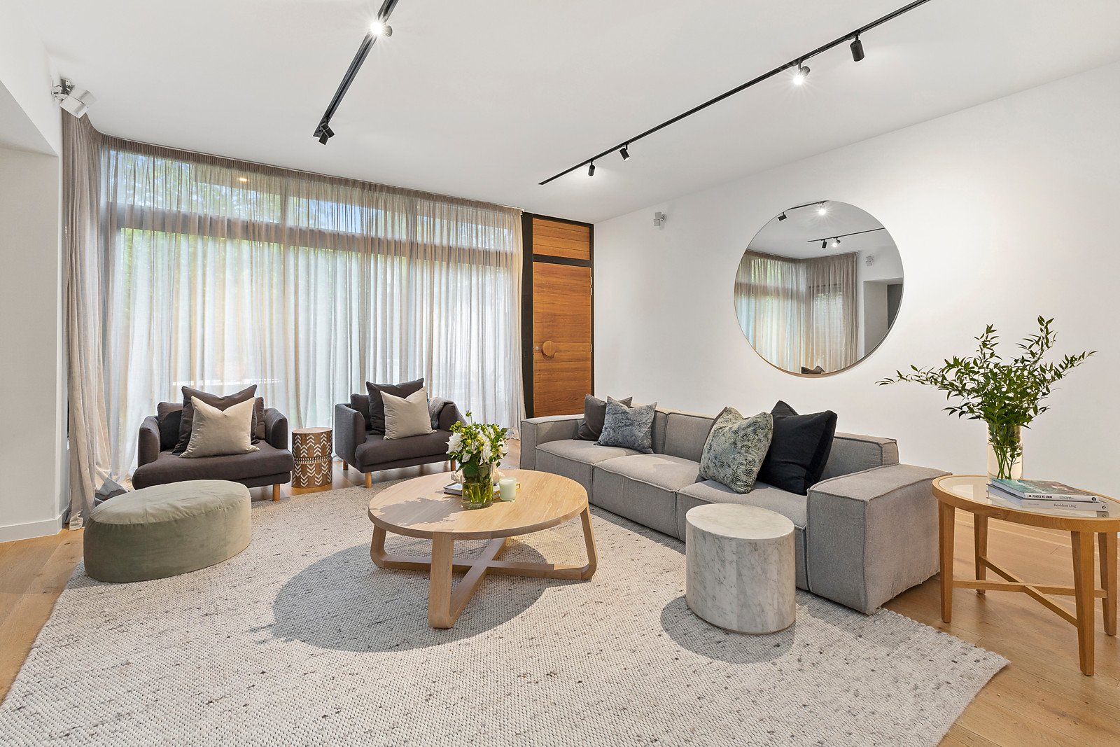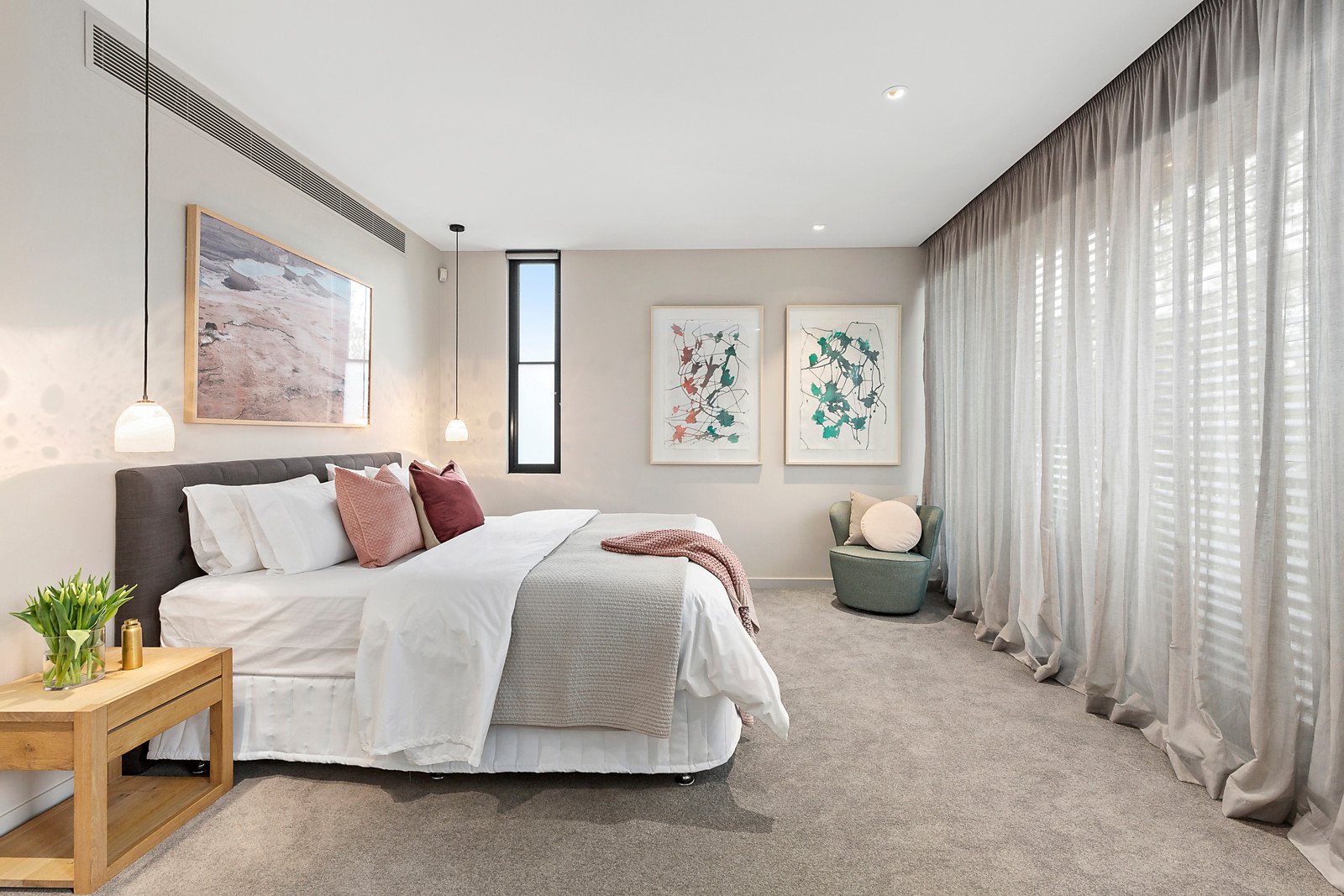Opening to a private north-facing forecourt, high ceilings accentuate the expansive scale of the sensational open plan living and dining room featuring wide oak floors and bespoke cabinetry. The gourmet kitchen is superbly appointed with Miele appliances and stone Italia benches with a breakfast bar. A second living or media room opens out to a tranquil landscaped garden with bluestone BBQ terrace. A lavish main bedroom with designer en suite, fitted walk in robe and a north-facing Juliet balcony sets a benchmark in luxury that is matched by two additional bedrooms with built in robes, a retreat, home office or 4th bedroom and three stylish bathrooms.