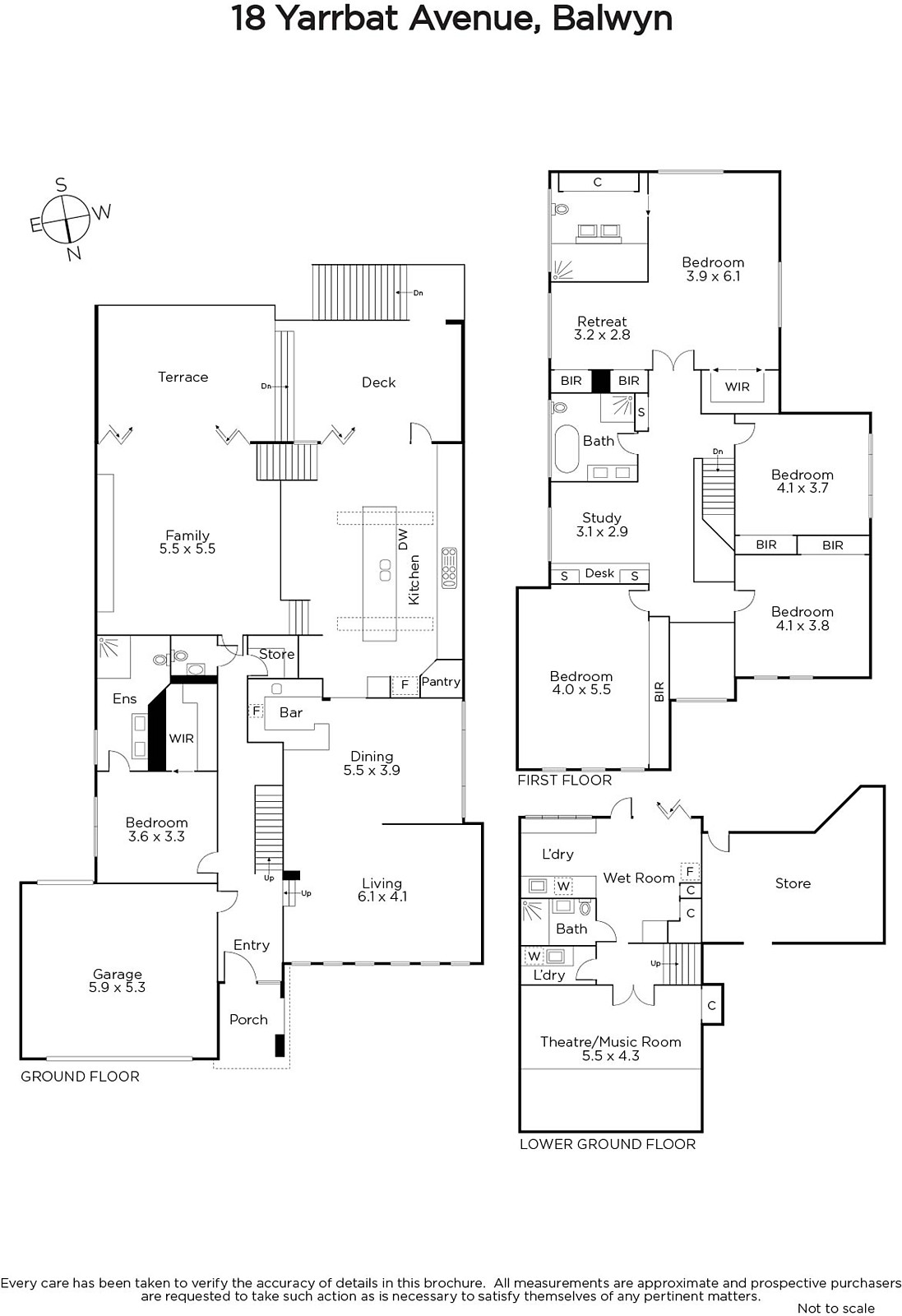 A superb, refurbished interior features beautiful parquetry floors and entrance hall with second level ceiling flowing to a downstairs guest bedroom with WIR and ensuite, powder room, walk-in linen press/storage with safe, a formal sitting room & dining with bar. A generous family domain includes informal dining and generous living serviced by a brilliant granite kitchen with sky window and island bench equipped with an Ilve gourmet stove and Miele stainless steel dishwasher opening through bi-fold doors to two decks with a BBQ kitchen and City skyline glimpses overlooking a large pool & adjacent cabana. Also leading to a lower-level theatre, laundry/wet bar and pool bathroom. Whilst upstairs has four further bedrooms with BIRs, large main with WIR and ensuite plus a family bathroom and a retreat or study.