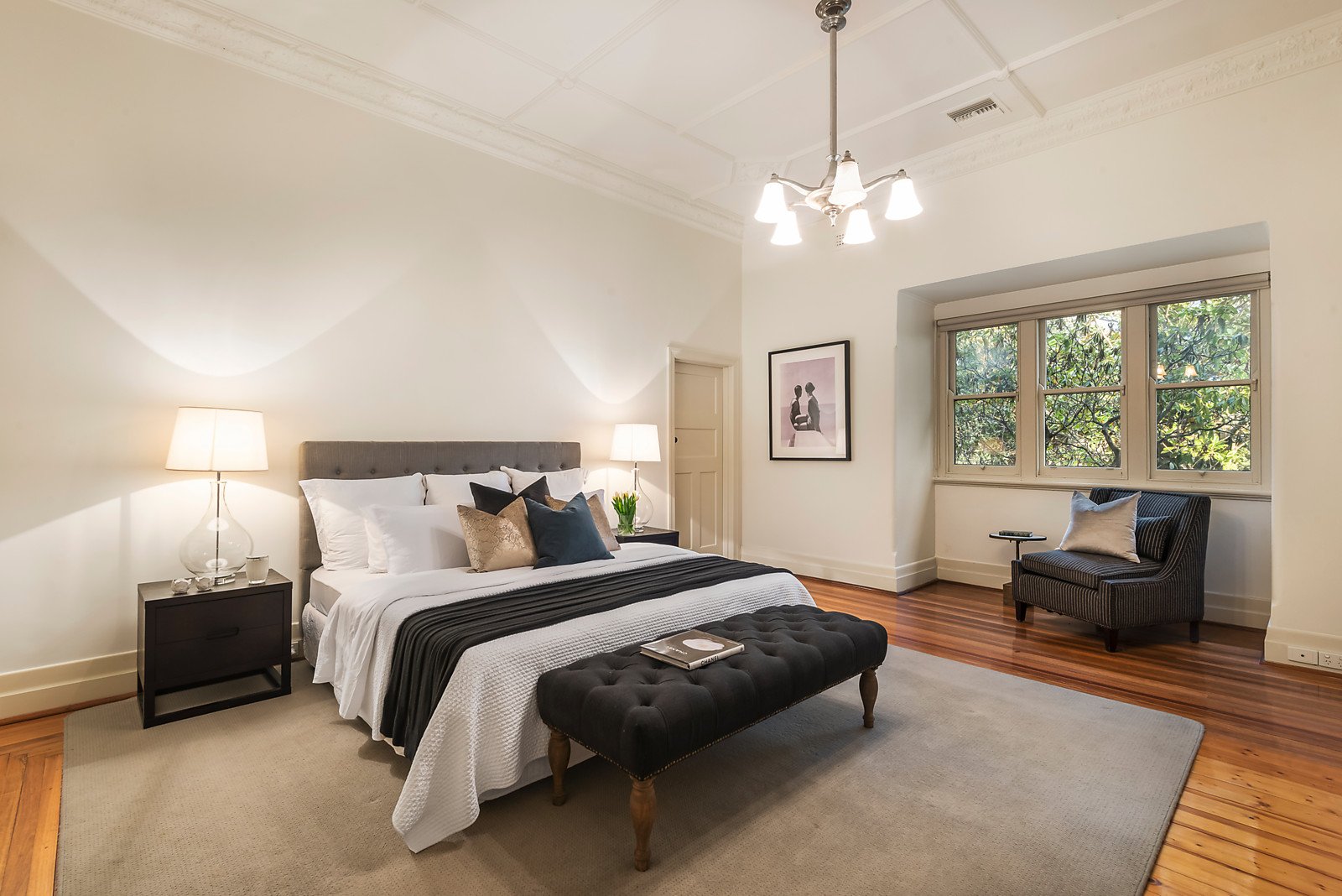 Distinguished by ornate ceilings, timber paneling and intricate timber floors, the imposing reception hall leads through to a refined library and palatial sitting room with a gas fireplace. Natural light streams through the generous living/dining room and a gourmet kitchen appointed with Smeg oven and stone benches. The living area flows out to a large deck and the deep private surrounding gardens with double carport accessed via Ranfurlie Cres. Beautifully proportioned family accommodation comprises the glorious main bedroom with stylish en suite and built in robe, three additional bedrooms, a study and chic family bathroom.