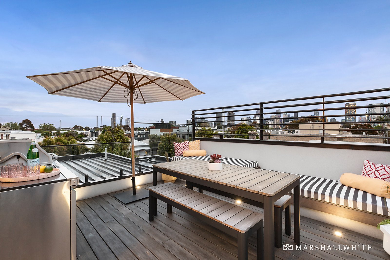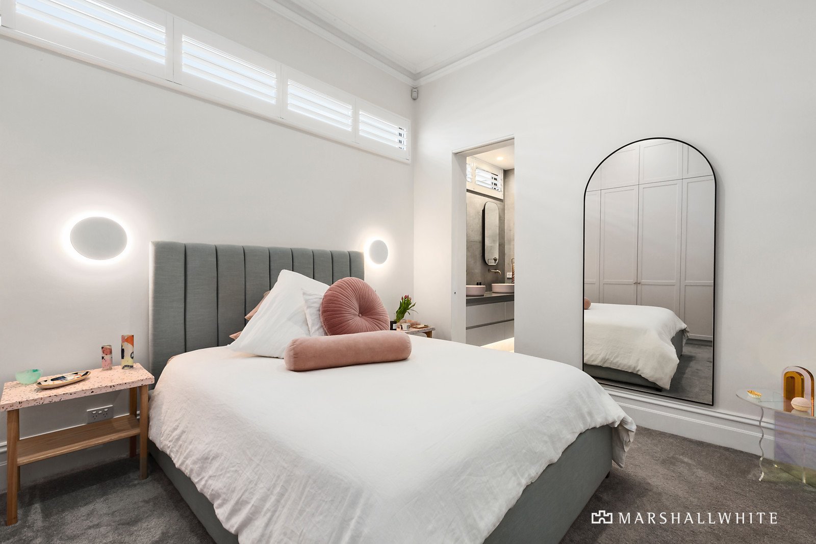 An architect designed renovation that delivers inspired designer style, impressive functionality and a premium level of quality has completely transformed this classic freestanding Victorian residence into a sophisticated family domain just moments from the beach, Bay St, the light rail, parks and schools. Behind the block-fronted façade, contemporary themes including herringbone flooring and bespoke lighting define the entrance hall and generous open plan living and dining room. Capably served by a sleek gourmet Miele kitchen appointed with stone benches and integrated fridge/freezer, the living spaces extend out to a private courtyard. The beautiful main bedroom with ample built in robes and a lavish designer en suite with under floor heating is complimented by a formal sitting room / 4th bedroom downstairs. Open oak stairs lead up to two additional bedrooms with built in robes, a second living room, stylish ensuite with bath and heated towel rails. Upstairs is a fabulous private roof top sun-terrace with built in BBQ/fridge and vast city views. Impeccably presented throughout, it includes alarm and video cameras, ducted vacuum, powder-room, Euro-laundry, hydronic heating throughout, heated bathroom floors and garden shed,