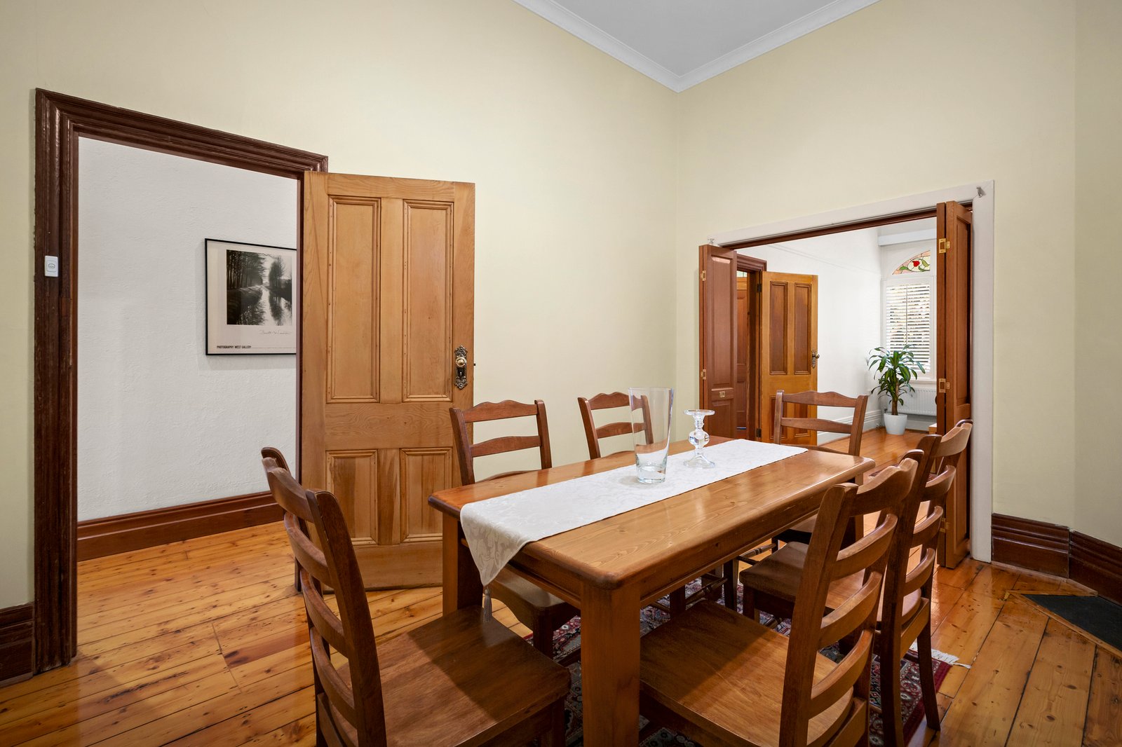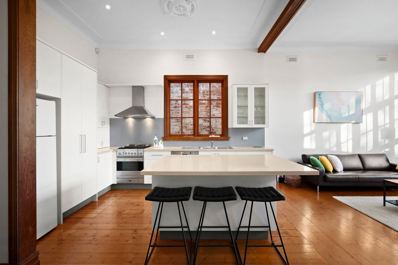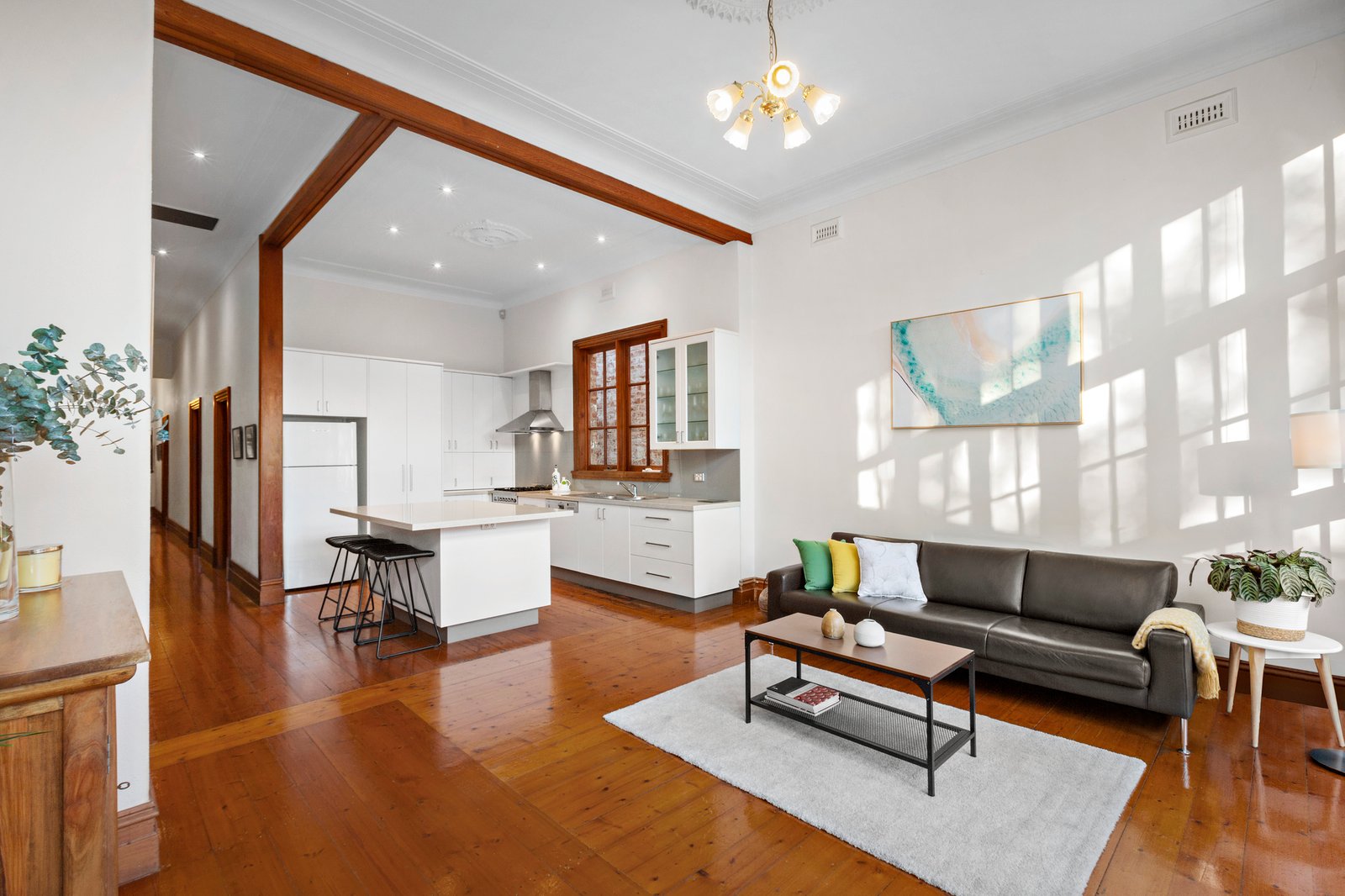An exquisite double-fronted facade displays stunning hallmarks of the era, with a tessellated verandah preceding the entrance hall featuring high ornate plaster ceilings and Baltic pine polished floors. A beautiful, north-facing formal lounge and separate dining room interconnect for large gatherings, whilst the expansive open-plan living and dining room encompasses a sleek modern kitchen with quality appliances, stone benchtops and an entertainer's island. For indoor-outdoor ease, French doors open the living area to a broad red-brick paved terrace, which is perfectly private with low-maintenance garden surroundings and rear pedestrian access to ROW.