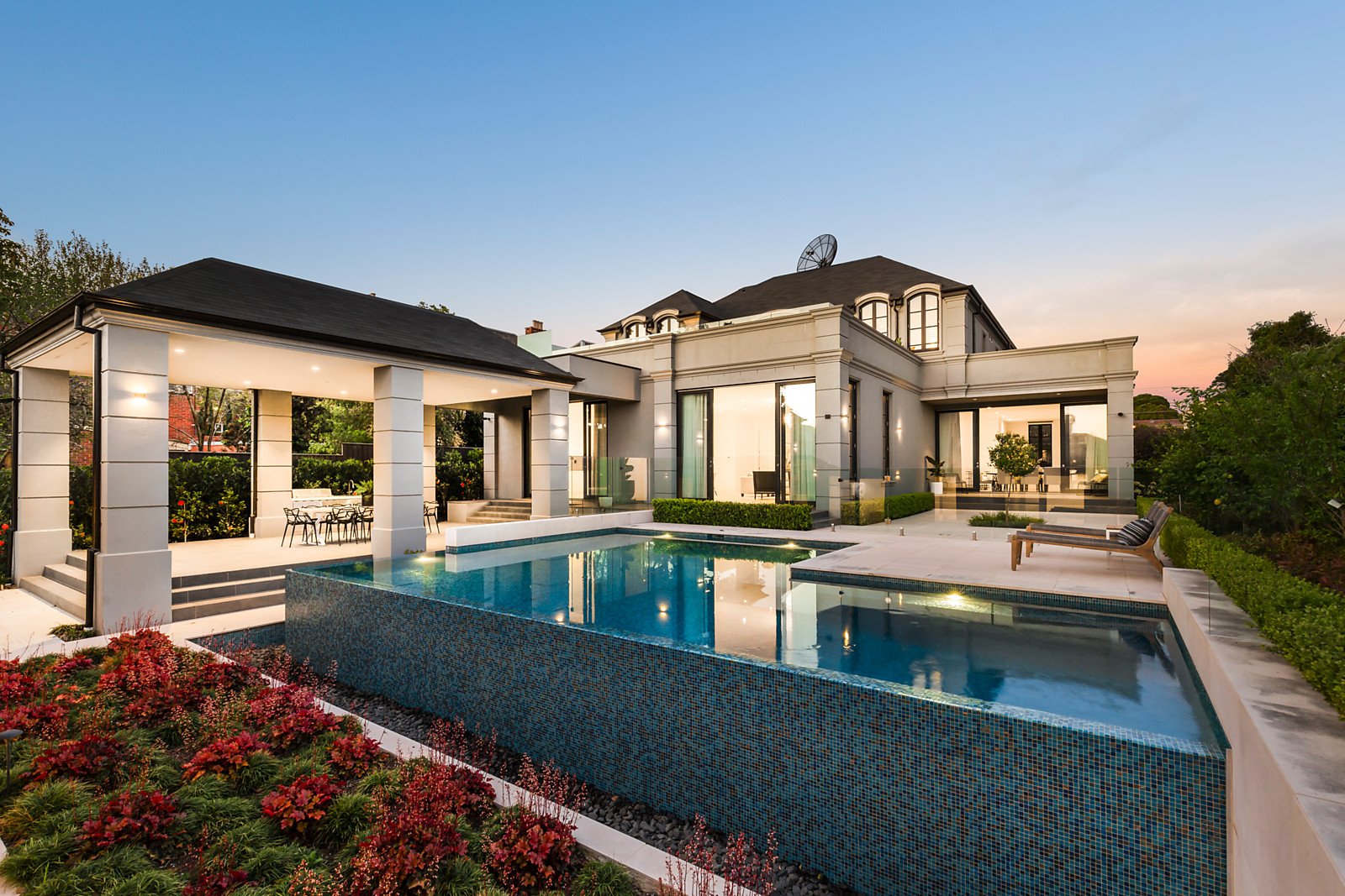 Vast in scale and visionary in its grandeur, welcome to a luxury Brighton enclave with a grand-scale main residence and a separate two-bedroom home accessed from Well Street. The main home is a five-bedroom and study extravagance with three levels of quality, huge living zones, and a six-car basement garage. It's like-new and luxuriously appointed to the high-est standard. The design by Papapetrou Rice Architects is enhanced with an infinity-edge pool and a beautiful garden cre-ated by Nathan Burkett Landscape Architecture. Guests, extended family or staff will love the additional home with a full kitchen, lounge, two bedrooms, a bathroom, and separate secure car parking. The main home is world-class with big spaces that can be sectioned off into everyday living zones, multi-oven Miele kitchen - including steam oven - and butler's pantry, an ensuite for each of the five bedrooms, and a large study. A basement home gym, first-floor retreat and large roof ter-race offer excellent zoning, and there's the option of a ground-floor main bedroom suite. The sophisticated interior is de-signed to perfection, from keyless entry and extensive security surveillance to a grand entry foyer, soaring ceilings, state-ment staircase, a seamless connection from the family room to outdoor entertaining spaces, and oak and polished concrete floors. Three Miele ovens and a warming drawer, two dishwashers and an integrated coffee machine are quality kitchen features, and there's integrated fridge-freezers. Swiss Laufen basins and tapware feature in all bathrooms, there's zoned ducted climate control, plantation shutters, and energy-efficient double-glazed windows and doors. The exclusive address is central and convenient, 400 metres to Church Street's cafes and shops and an easy walk to Brighton Grammar, Firbank, trains and the beach.
