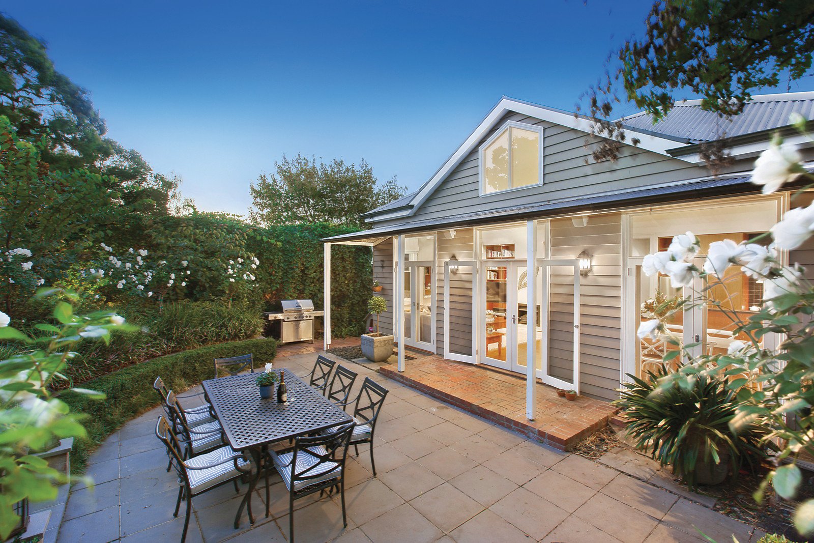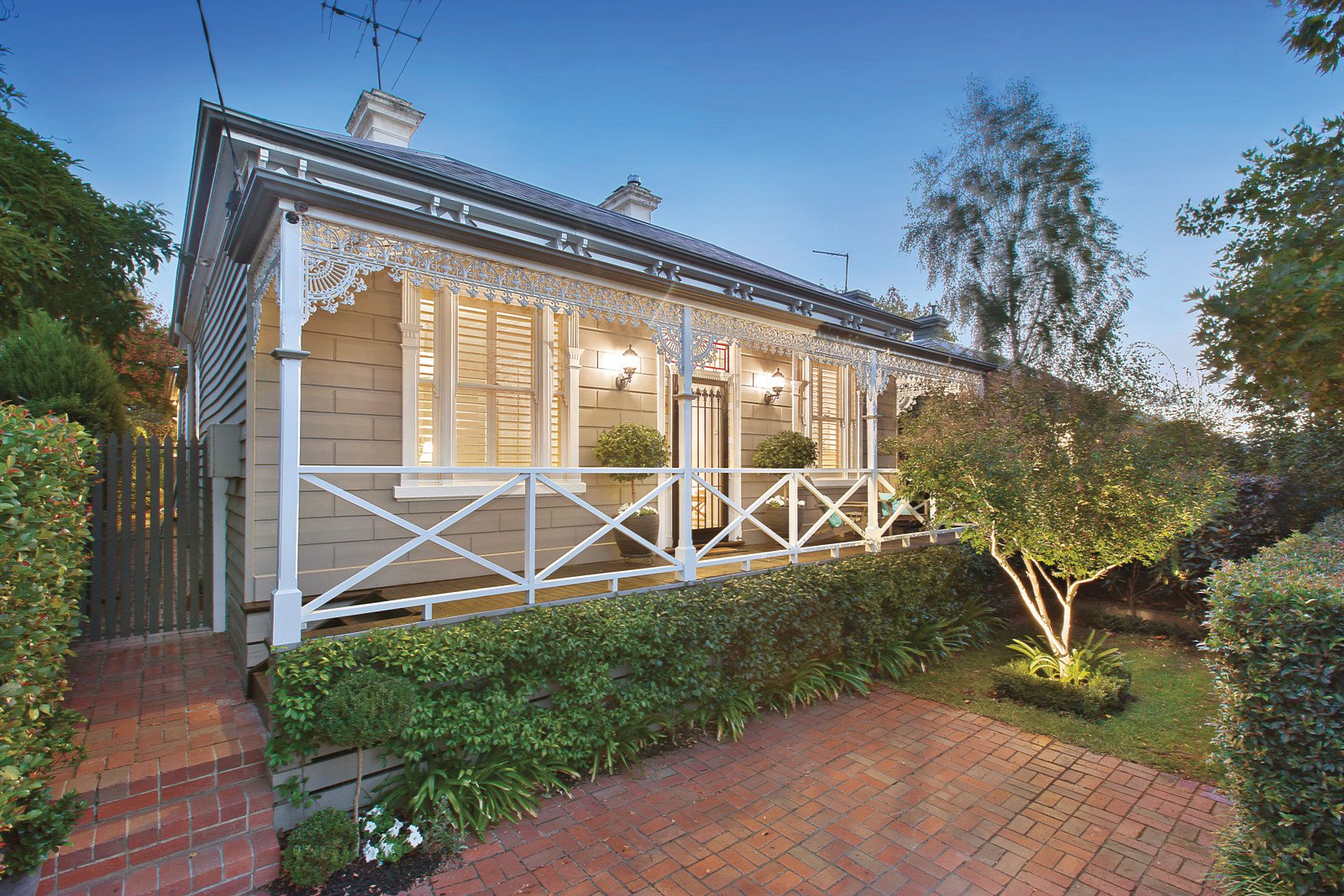 A highly appealing façade complete with lace iron verandah compliments a designer-style, neutral interior featuring a stunning double arched hallway leading to a stylish formal sitting room with views to a hedged front garden. There are three well sized bedrooms, the main with WIR and ensuite, as well as a pristine fully-tiled family bathroom and expansive laundry. The original part of the home flows seamlessly through to a superb, light-filled family living area with vaulted ceilings and sky view windows. Other features include a sleek, contemporary timber, granite and Euro stainless steel kitchen opening through French doors to a leafy, private courtyard garden ringed with clipped Box Hedges, Magnolias and Iceberg Roses. A water feature adds to the tranquillity - providing a secluded area for relaxation, alfresco dining and entertaining. Other features of this beautiful home include original leadlight glass, ceiling roses and ornate cornices, marble OFP to the formal sitting room with an additional fire place to the family area plus instantaneous hot water, ducted heating, R/C air-conditioning (family room), solar panels, 2,000ltr water tank and off-street parking.