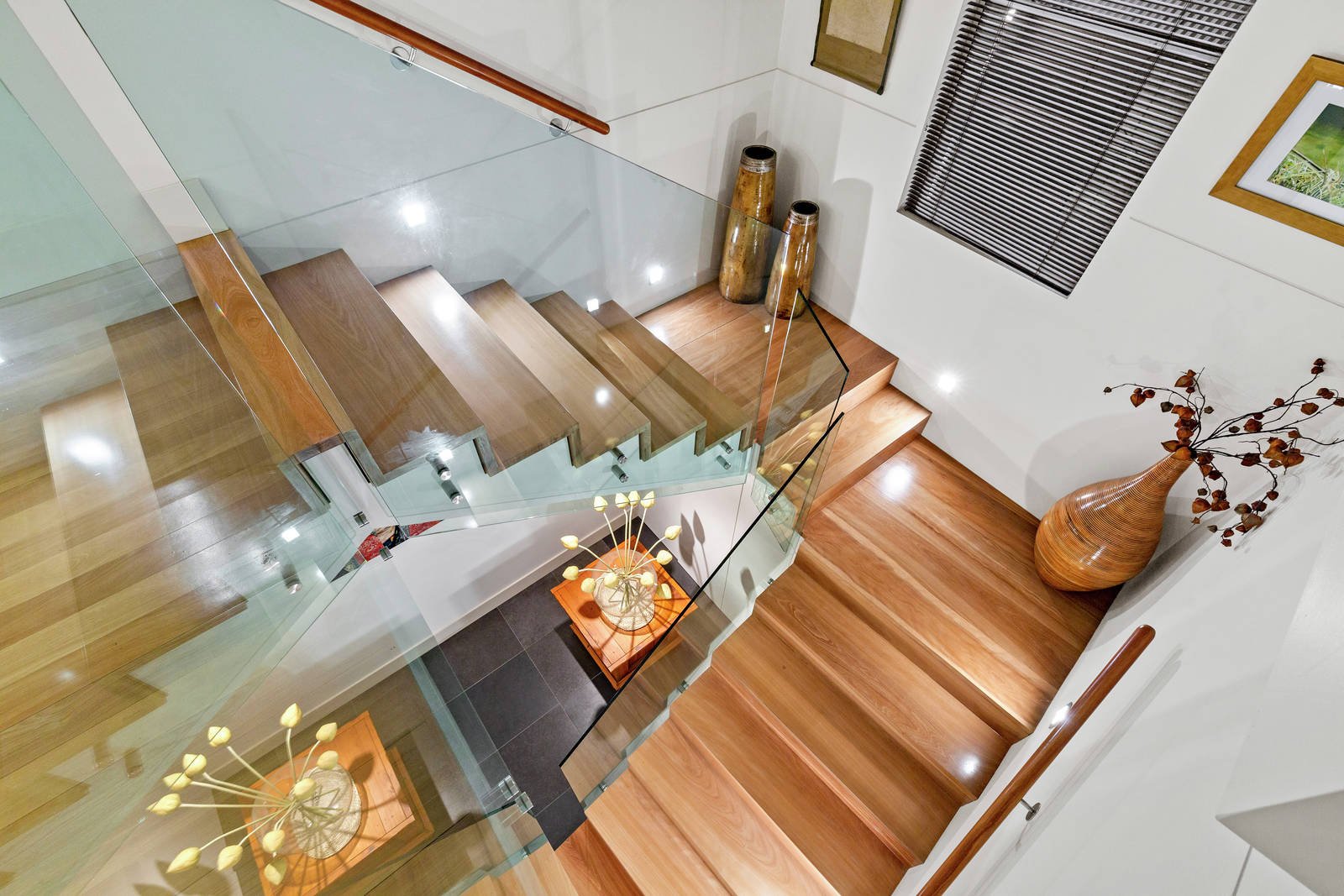 The upper level features luminous open plan living & dining extending seamlessly to a sensational all-weather balcony, fully protected from the elements by premium imported frameless sliding windows, sun blinds and heaters, a wonderful setting for year-round entertaining.
