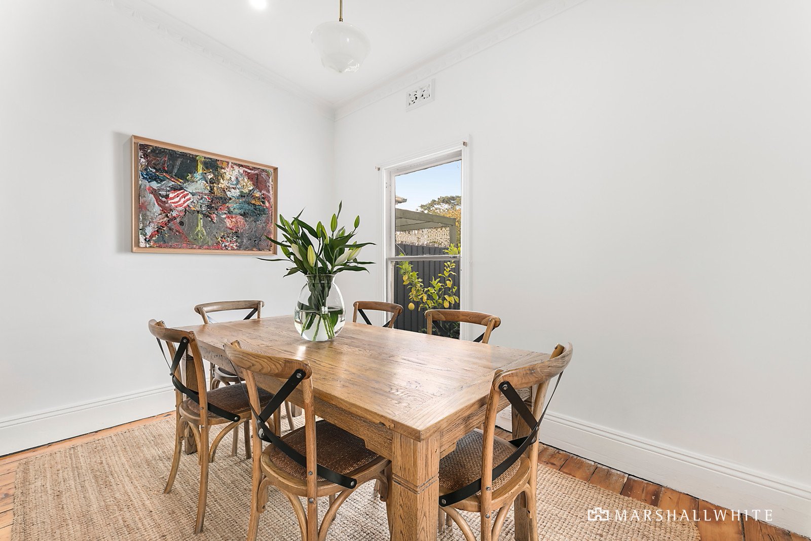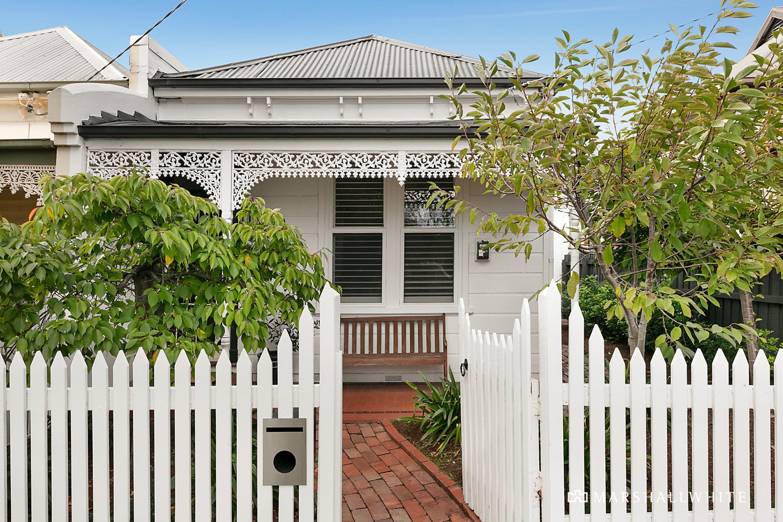 A leafy front garden behind a picket fence has instant appeal and leads past an iron lacework verandah to a light filled interior featuring Baltic Pine floors and high ceilings. An arched hallway flows into two spacious bedrooms, both with built - in robes then leading to a generous living room, separate dining area and a well - equipped kitchen. The kitchen and living areas open into a leafy private garden with a carport accessed via rear right of way.