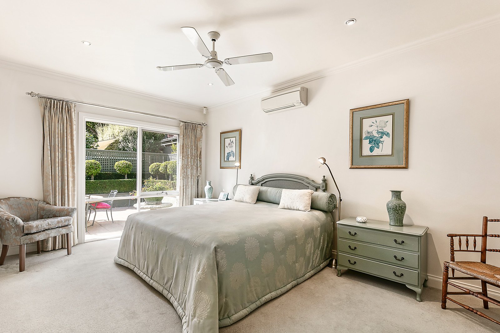 As a continuation of the living spaces, the large north-oriented paved garden is perfect for al fresco dining and entertaining in absolute privacy surrounded by beautifully manicured garden beds. The generous main bedroom with walk-in robe and ensuite overlooks the garden as does the second bedroom with built-in robe. There is also a fitted study, easily adapted as a 3rd bedroom if needed, and a pristine second bathroom.