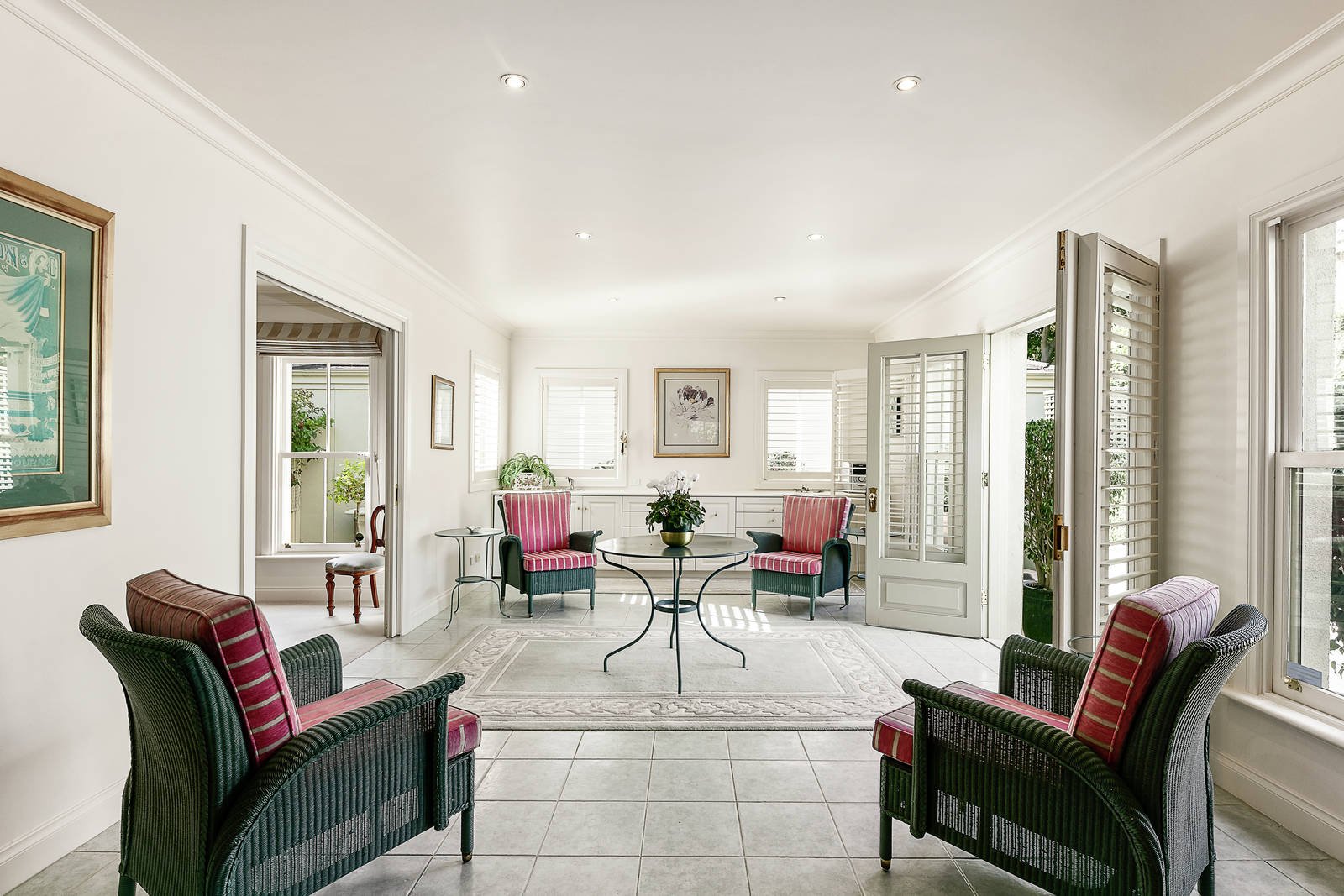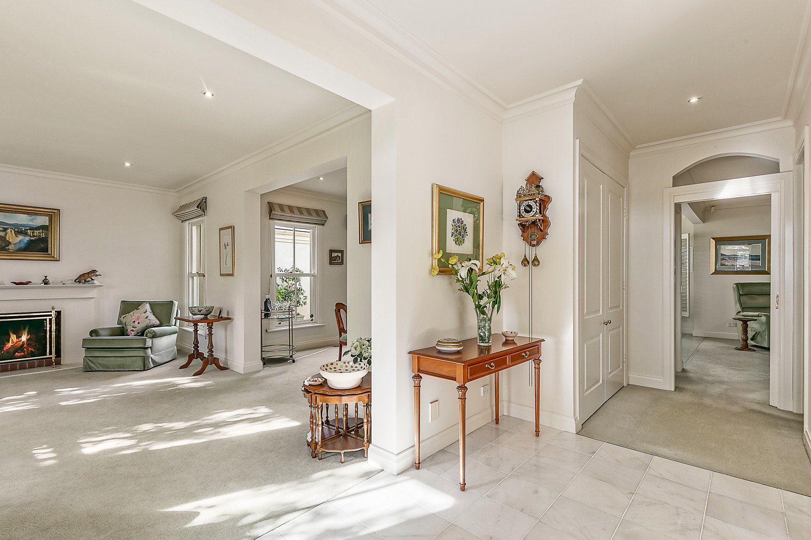 With a floor-plan that caters impeccably to both relaxed living and indoor-outdoor entertaining on a lavish scale, every room enjoys garden outlooks. The wide marble foyer introduces a gracious sitting room with open fire and a formal dining room overlooking a northern courtyard. The expansive open plan living and dining room includes a superb gourmet kitchen appointed with stone benches.
