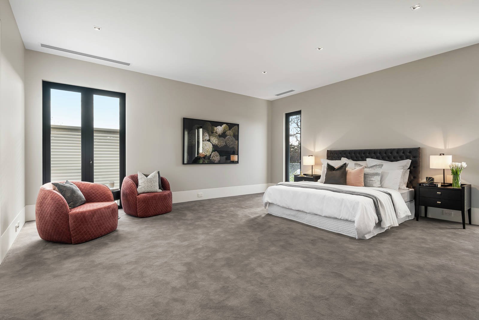 Comprehensively appointment with alarm, video intercom, DVR security cameras, in-floor slab heating, ducted vacuum, heating/cooling, powder-room, laundry, irrigation and auto gates, the specification list will impress!