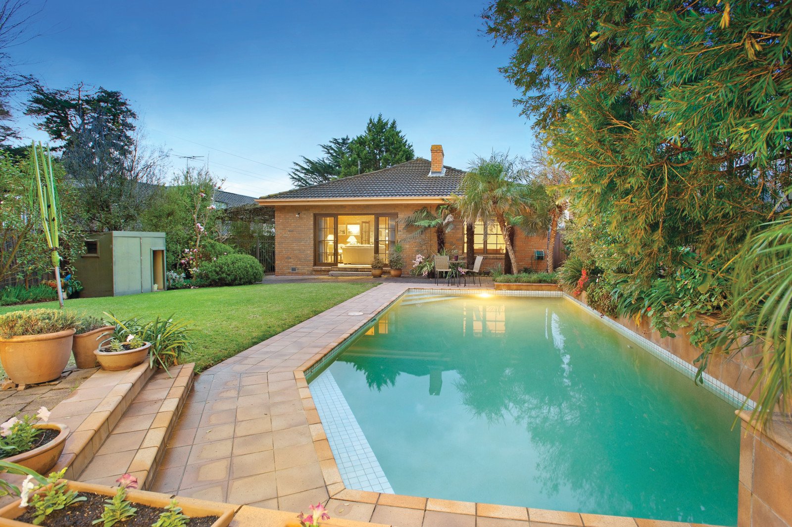 Idyllically situated at the end of a quiet cul de sac on Gardiner's Creek, the exceptional proportions and immaculate presentation of this substantial single level brick residence provide immediate family enjoyment while considering options to further update on a deep private allotment some 920sqm approx (STCA). The wide entrance hall introduces an inviting sitting room with marble open fireplace, formal dining room and study. The spacious main bedroom with en-suite and built in robes is accompanied by three further double bedrooms with built in robes and a bright bathroom. The superbly equipped kitchen with adjacent casual dining area and an expansive family living room with open fireplace open to the deep leafy private garden with heated pool. Brilliantly located near High St shops and restaurants, good schools, Glen Iris station, bike path, parks and freeway access, this much loved home also includes ducted heating, ceiling fans, laundry and large double garage with under house cellar.