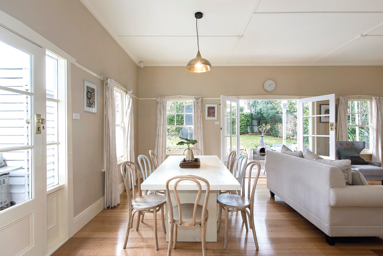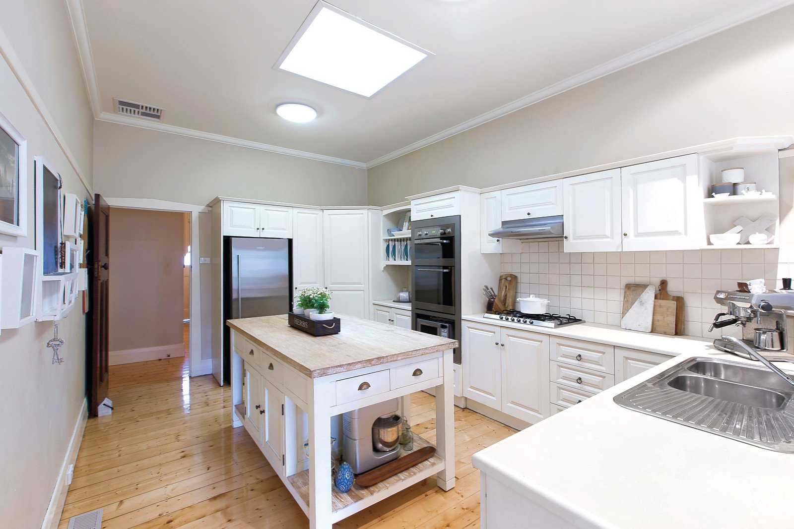 Baltic pine floors and original fretwork are showcased in the central hallway which leads to an elegant sitting room with open fireplace, beautiful main bedroom with en-suite and built in robe, three additional bedrooms with built in robes and a bright bathroom. A gorgeous country style kitchen with Baumatic oven and loads of storage and a spacious light-filled living and dining room open out to a deep private northeast facing garden.