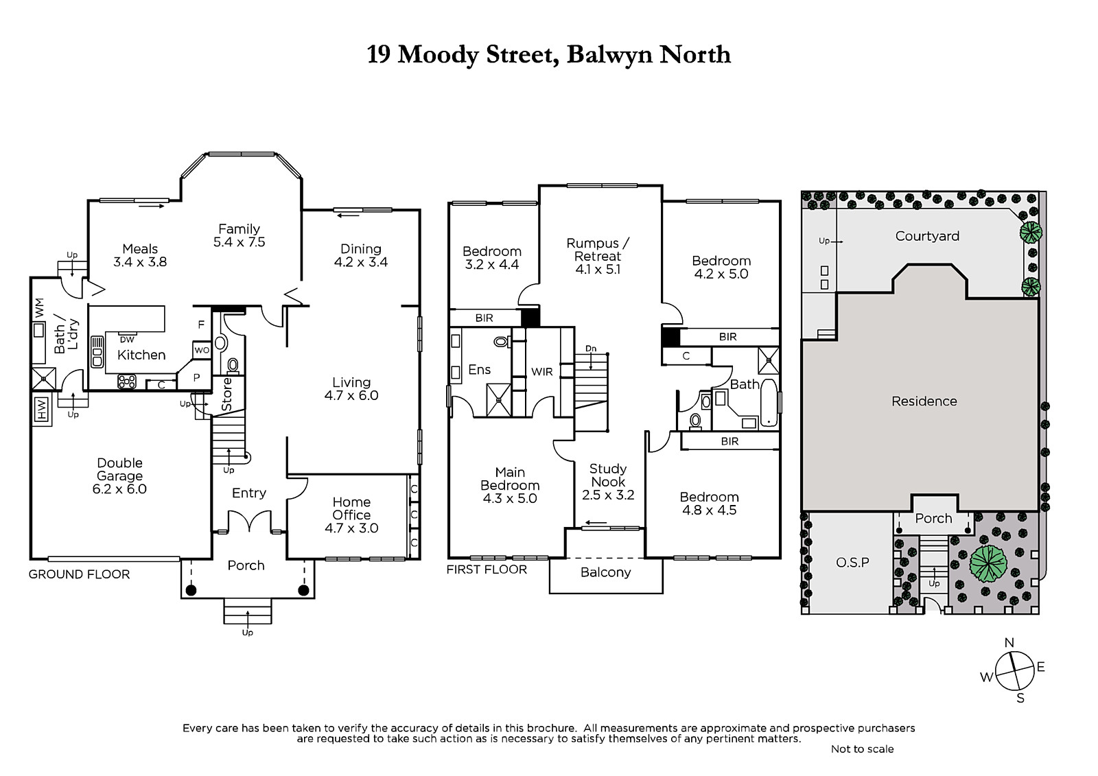 Behind a beautiful garden with a magnificent Weeping Cherry Tree at the centre, double doors reveal polished timber floors through the wide central hall, elegant sitting room, glorious formal dining and a library or home office. The expansive open plan living and dining room with a gourmet kitchen boasting stone benches and Miele appliances opens to a private north-facing paved courtyard. Exceptionally generous family accommodation upstairs comprises a palatial main bedroom with designer en suite and walk in robe, three additional double bedrooms with built in robes, a very spacious retreat, study nook, balcony and stylish bathroom with a freestanding bath.