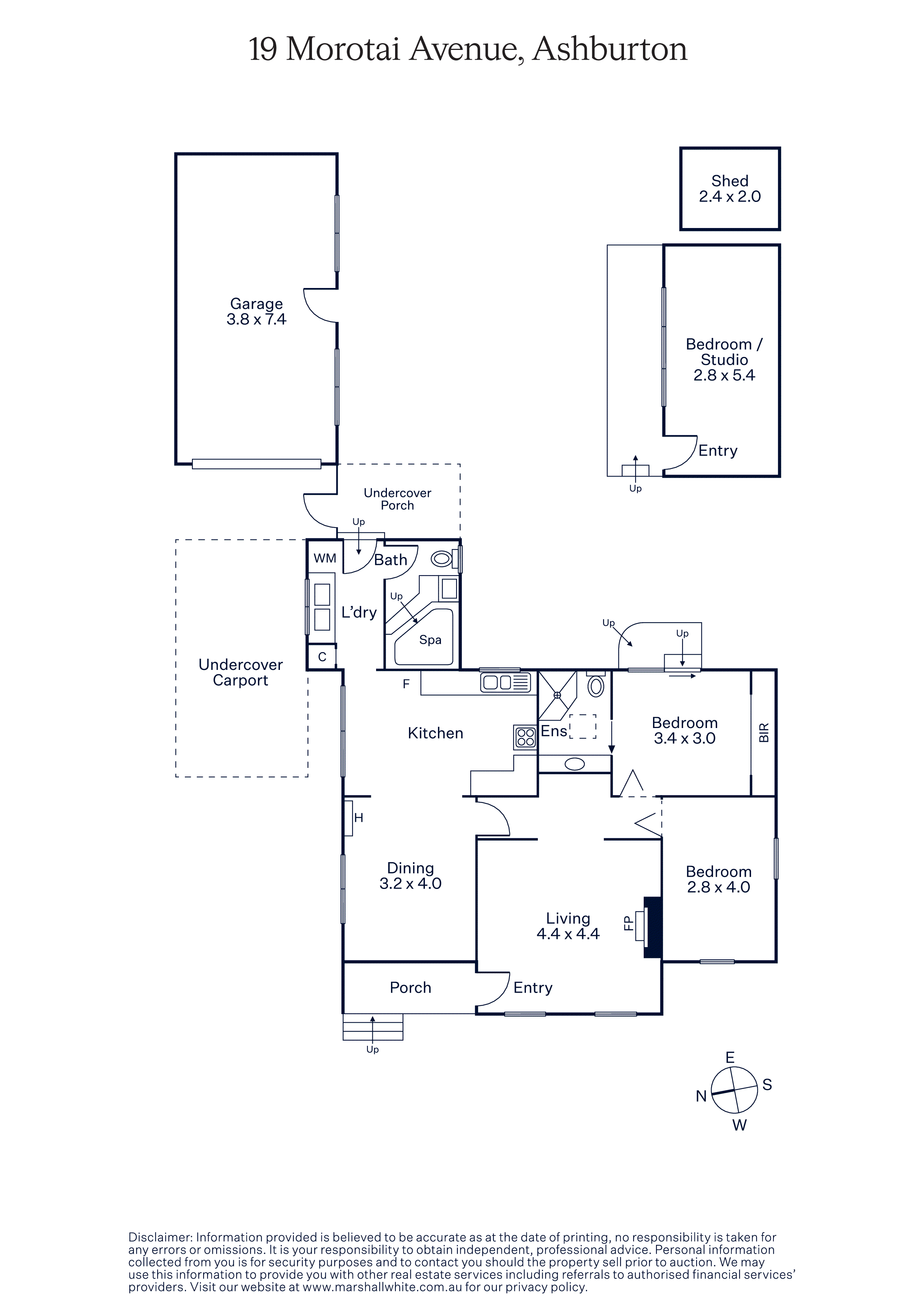 The interior features timber floors that flow through a light-filled living room and study nook, leading to a generous dining room served by a large, well-appointed kitchen. The spacious main bedroom, complete with a built-in robe and en suite, is complemented by a second bedroom and a bathroom with a spa bath. In the expansive, private northeast garden, you'll find a freestanding studio/retreat or home office, perfect for remote work or creative pursuits.