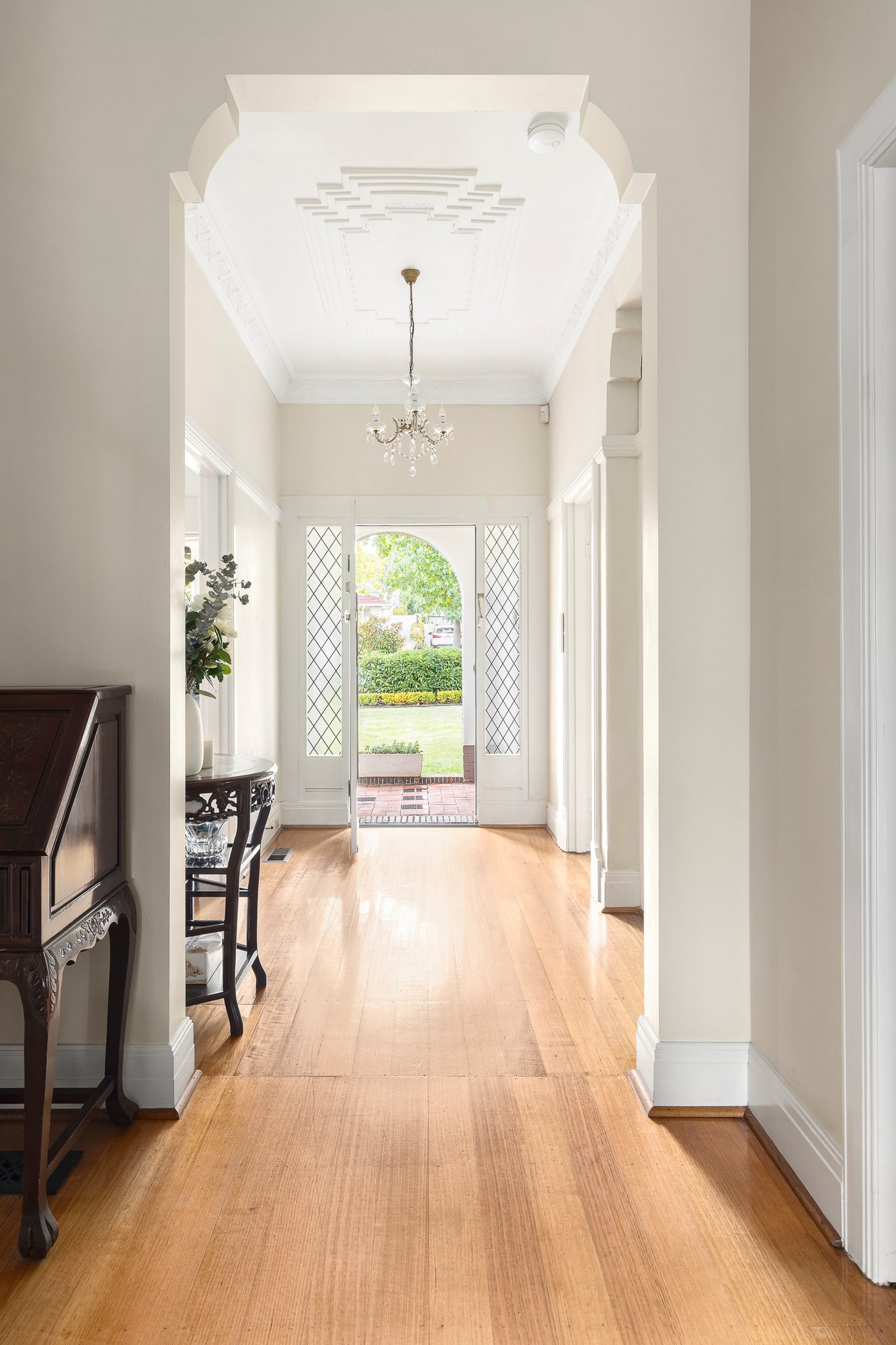 With its exquisite, circa 1930s Art Deco charms tastefully preserved and sensitively updated to deliver a more contemporary alfresco flow, this grand, five bedroom plus study residence enjoys a coveted parkside position within Camberwell’s exclusive Golf Links Estate. Under soaring and finely detailed ceilings, with leadlight windows, dappled Deco plasterwork, picture rails and fireplaces proudly on display, this is a landmark family holding backing directly onto the vast expanses of Willison Park, in the zone for both Camberwell High School and Canterbury Girls Secondary College. Crafted with large families and proud entertainers in mind, a substantial stone-topped kitchen overlooks a family meals area and a vast living area with built-in bench seating and views over the backyard to the park. Seamlessly, the open-plan flows to an undercover alfresco dining area and down to a generous formal-styled backyard, whilst a lounge room and more formal dining offer more ambient living zones. Enhanced by intercom entry, a lock-up garage and driveway parking for at least four vehicles, the home also features a clever under-stair study with wine storage. Further highlights include a laundry chute, hardwood flooring, ducted heating, a security alarm and superbly landscaped gardens. Within easy walking distance of some first class local cafes, this is a premium location on the cusp of Camberwell Junction, where the dining, shopping, cinemas and transport options are certain to impress.