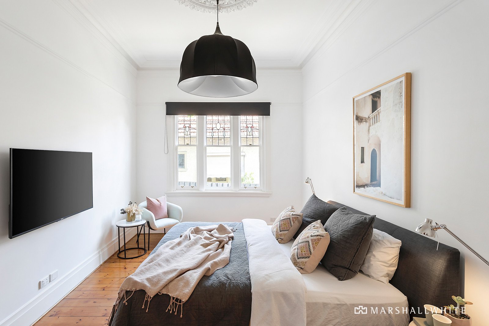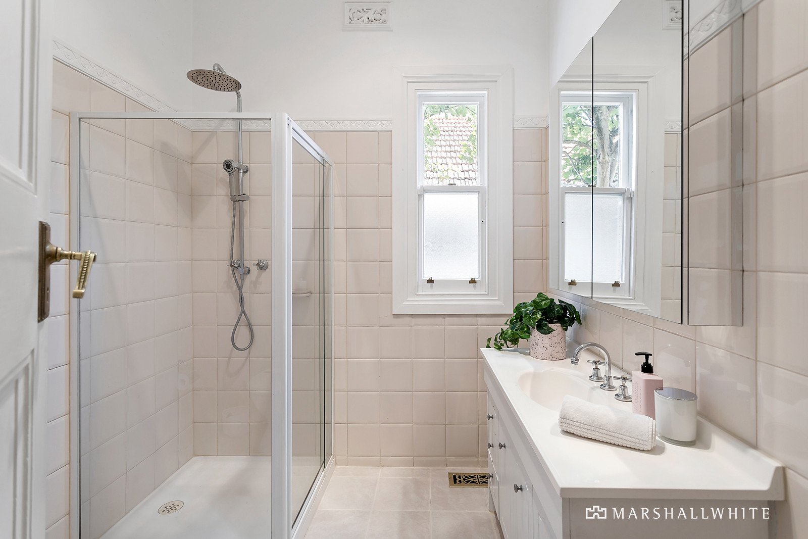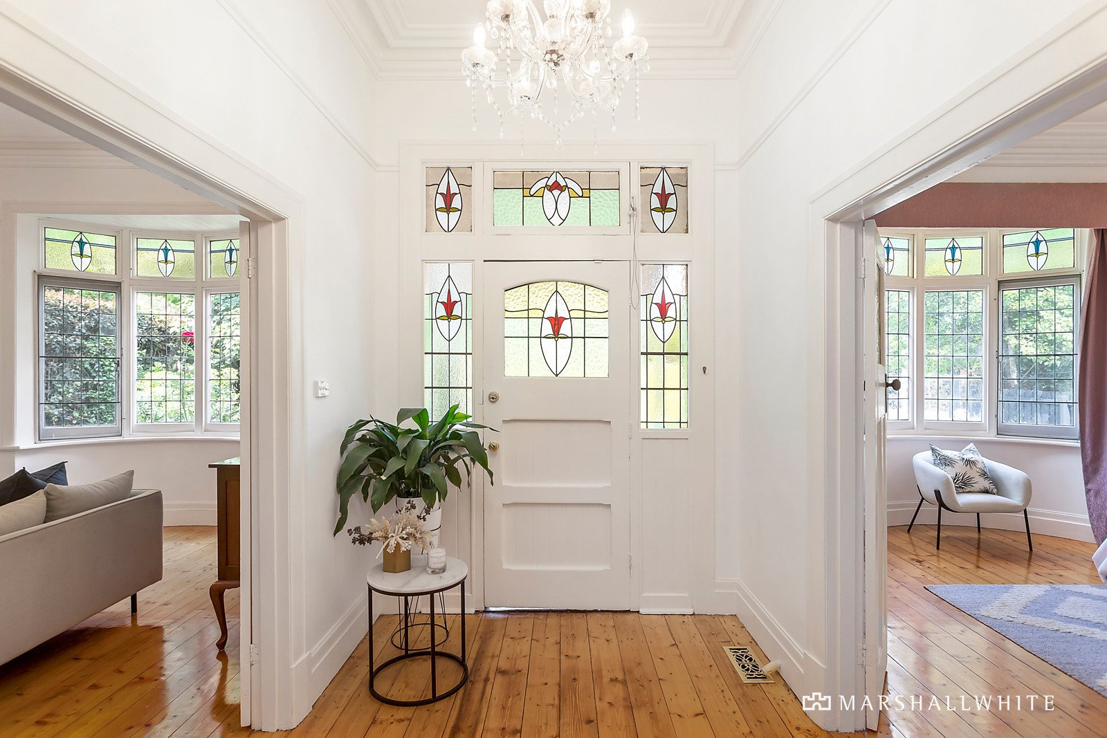 Beyond an alluring central verandah, a generous leadlight entry hall reveals the classic and well proportioned rooms that are brimming with the elegance of its day. Polished original Baltic floorboards lie beneath soaring corniced ceilings, while a scattering of casement bay windows, decorative ceiling roses, and leadlight glass fill the rooms with an enviable charm.