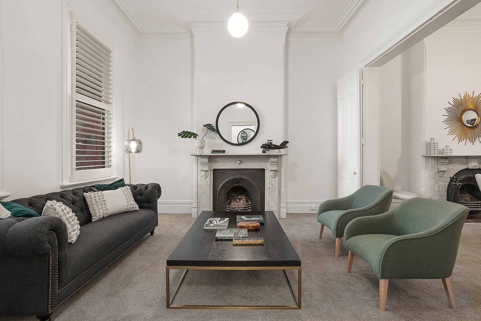 Distinctive tessellated tiles flow from the verandah into the imposing arched hallway, which introduces an elegant sitting room and adjacent formal dining room, both featuring marble fireplaces. A bright well appointed kitchen and living/dining area open to the stunning private stone-paved L-shaped garden with BBQ, a vine covered pergola and off street parking for 2 cars from Harold St. Upstairs, an expansive main bedroom with full width balcony, marble fireplace, walk in robe and en suite complements two additional bedrooms and a bathroom.