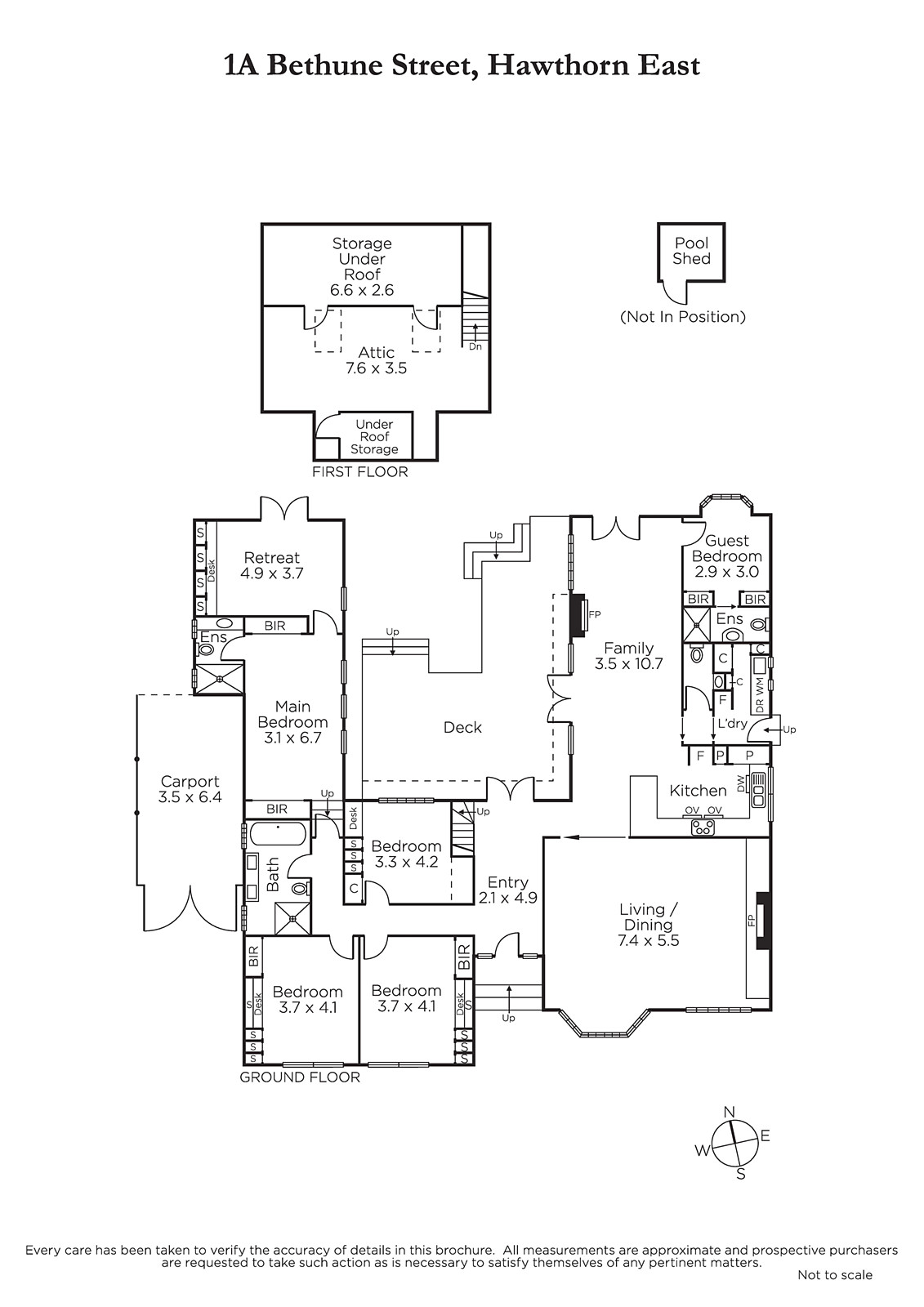 The flowing floor-plan is divided into two wings on one side four bedrooms, three with BIRs and student desks, a main with BIRs, ensuite and adjacent parents retreat/study; plus a sparkling family bathroom. An upper level attic is a perfect room for young family members to escape to. The living and dining areas are located in the other wing and include the fifth bedroom with ensuite, laundry and powder room. An updated kitchen with stone bench-tops and prestige Miele and Siemens appliances services a generous formal sitting and dining room and equally generous family room opening to a sunny outdoor space under a vine-clad pergola and central deck gently shaded by a Jacaranda tree. Plus the pool area with a cabana and outdoor dining including an open fireplace and gas barbeque. Delivering wonderful options for summer relaxation and entertaining in either of the three spots.