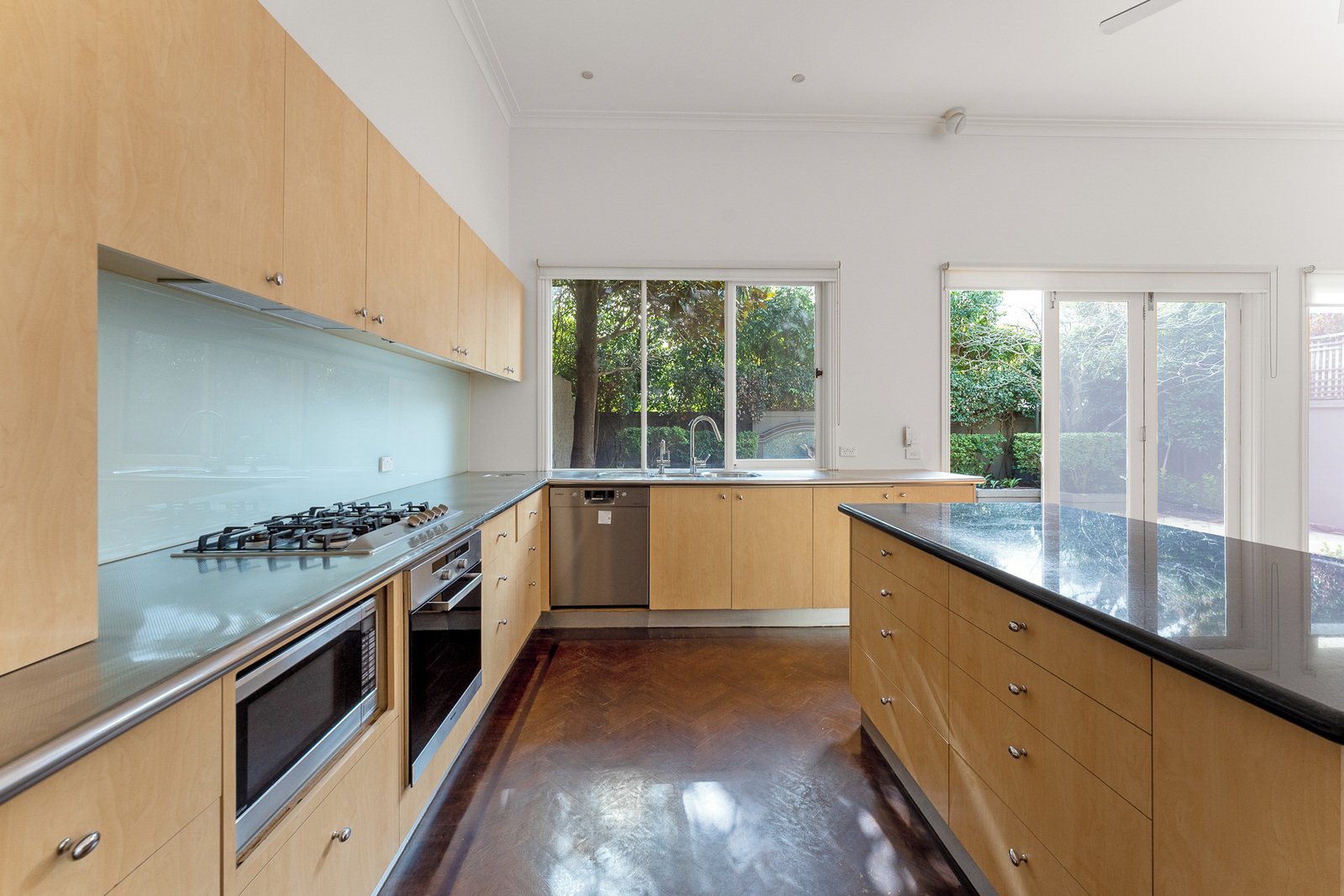 This home is defined by an imposing scale and rich parquetry, the entrance hall is highlighted by the sweeping lines of a curved staircase flowing through to a gracious sitting and formal dining room with gas-log fireplace. The open plan gourmet kitchen, boasting stainless steel and stone benches and Miele appliances and the inviting living/dining room opens to private north-facing landscaped courtyard garden.