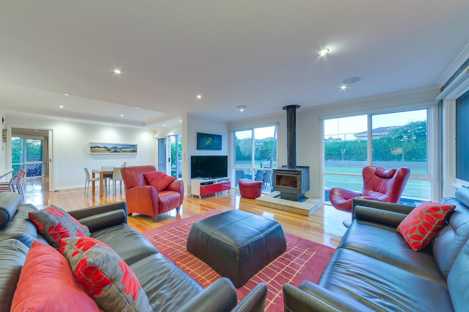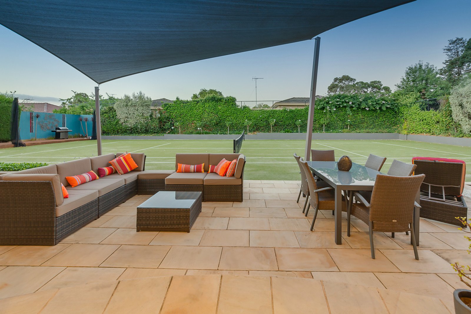 The interior is enhanced by a preferred north-facing rear aspect with sun-drenched living areas overlooking a paved outdoor entertaining area, tennis court, solar-heated pool and gas-heated spa delivering exceptional indoor/outdoor amenities for entertaining and relaxation. Downstairs features cathedral ceilings, honey-coloured timber floors, combined living and dining room, powder room, expansive family living and dining incorporating a central hostess kitchen with Caesarstone bench-tops and quality Euro appliances, laundry, rumpus room and a family bathroom. Whilst upstairs boasts a further three bedrooms, including a generous main with cathedral ceilings, WIR and fully tiled ensuite, pristine family bathroom and media room/home cinema. Plus a large teenage retreat, studio, sixth bedroom or home office above the garage. Other features include alarm, ducted heating, zoned R/C air-conditioning, ample storage, 5kW solar panels, two 2,000ltr rain water tanks, remote/double garage with secure internal access and turning area/off-street parking.