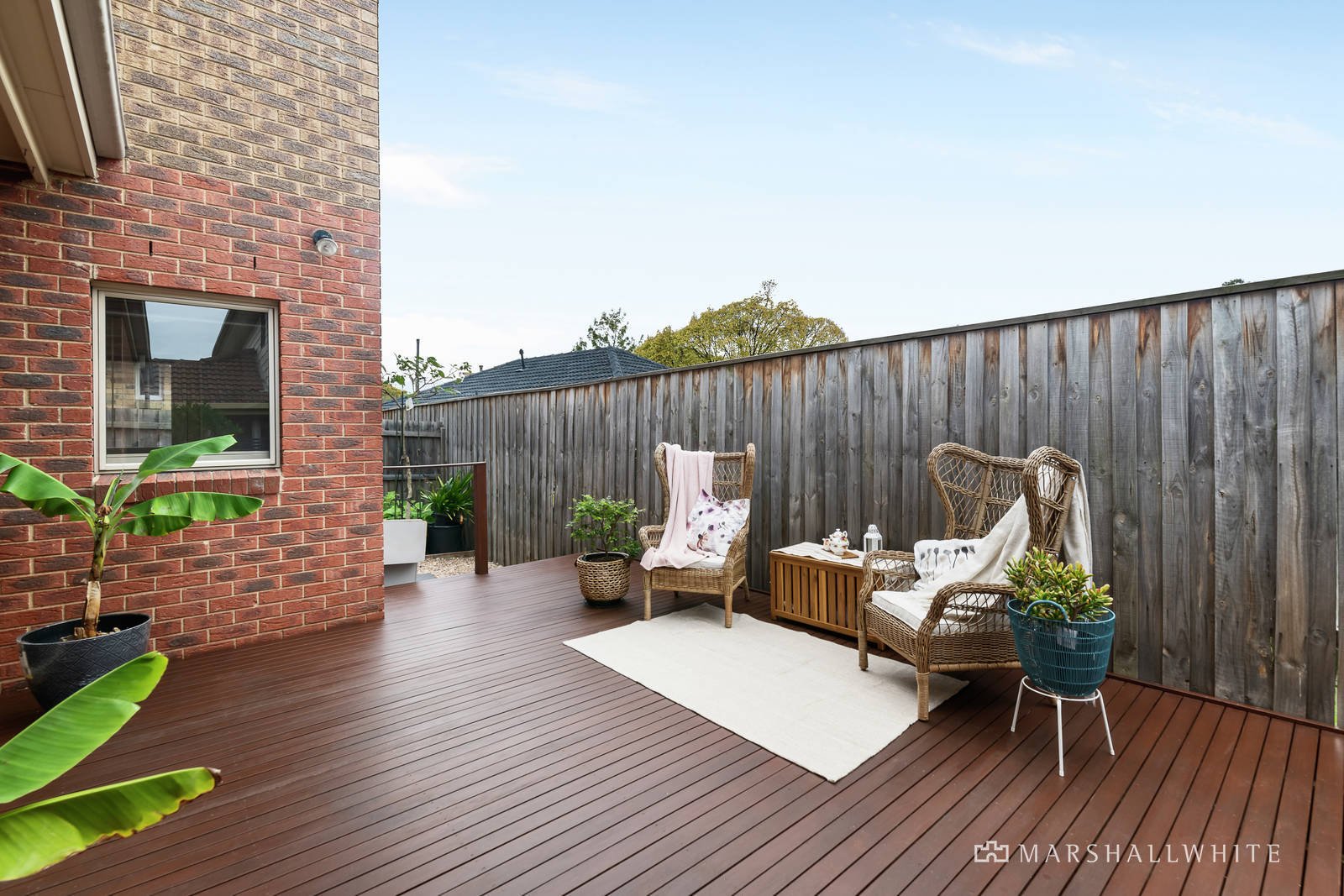 A light-filled and family-sized sanctuary, peacefully tucked-away in a quiet cul de sac, this three bedroom plus study townhouse is filled with northerly light while presenting a seamless indoor-outdoor connection that is perfect for alfresco entertainers. Easily maintained, with its own title and no Body Corporate fees, the home is suited to family entertainers who appreciate the value of a position in the zone for Vermont Secondary College.
