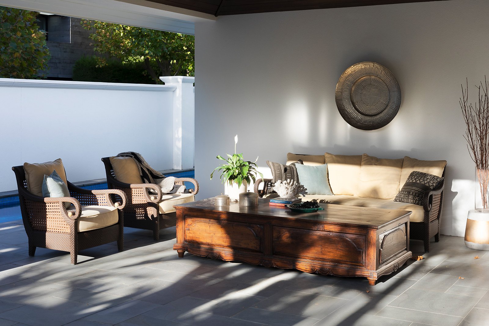 The immense stone kitchen is positioned just off the family and meals hub and offers a wealth of bench space and premium stainless steel Miele and Smeg appliances including a double oven. This central hub also enjoys a seamless indoor/outdoor flow to the brilliant north-facing alfresco zone, which consists of a large undercover dining area, 25m gas heated lap pool, spa, and garden space complemented by mature palm trees.