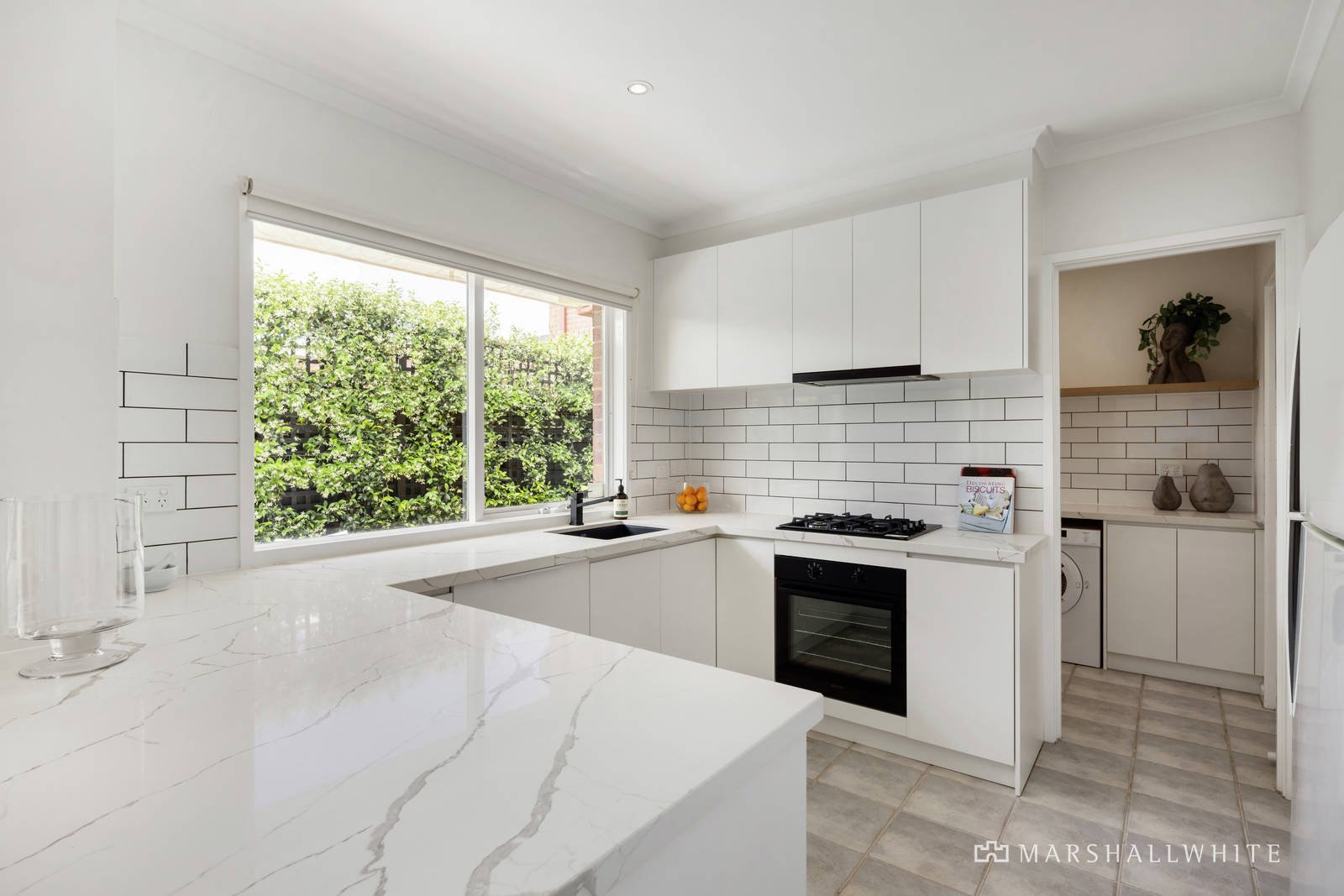 The immaculately presented interior features a generous living room with bay window, three zoned bedrooms or two plus a study or nursery bedroom, main with built-in robes and an ensuite plus a bright family bathroom. A north-facing open-plan informal living or dining room incorporates a brand new marble kitchen with premium appliances and matching new laundry flowing to a sun-drenched courtyard and box hedge and fragrant Star Jasmine garden with remote awning - providing a private oasis for indoor/outdoor entertaining. Other features of this appealing townhouse include quality fixtures & fittings, ducted heating, R/C air conditioner, ceiling fans, solar panels and a remote garage with secure internal access.