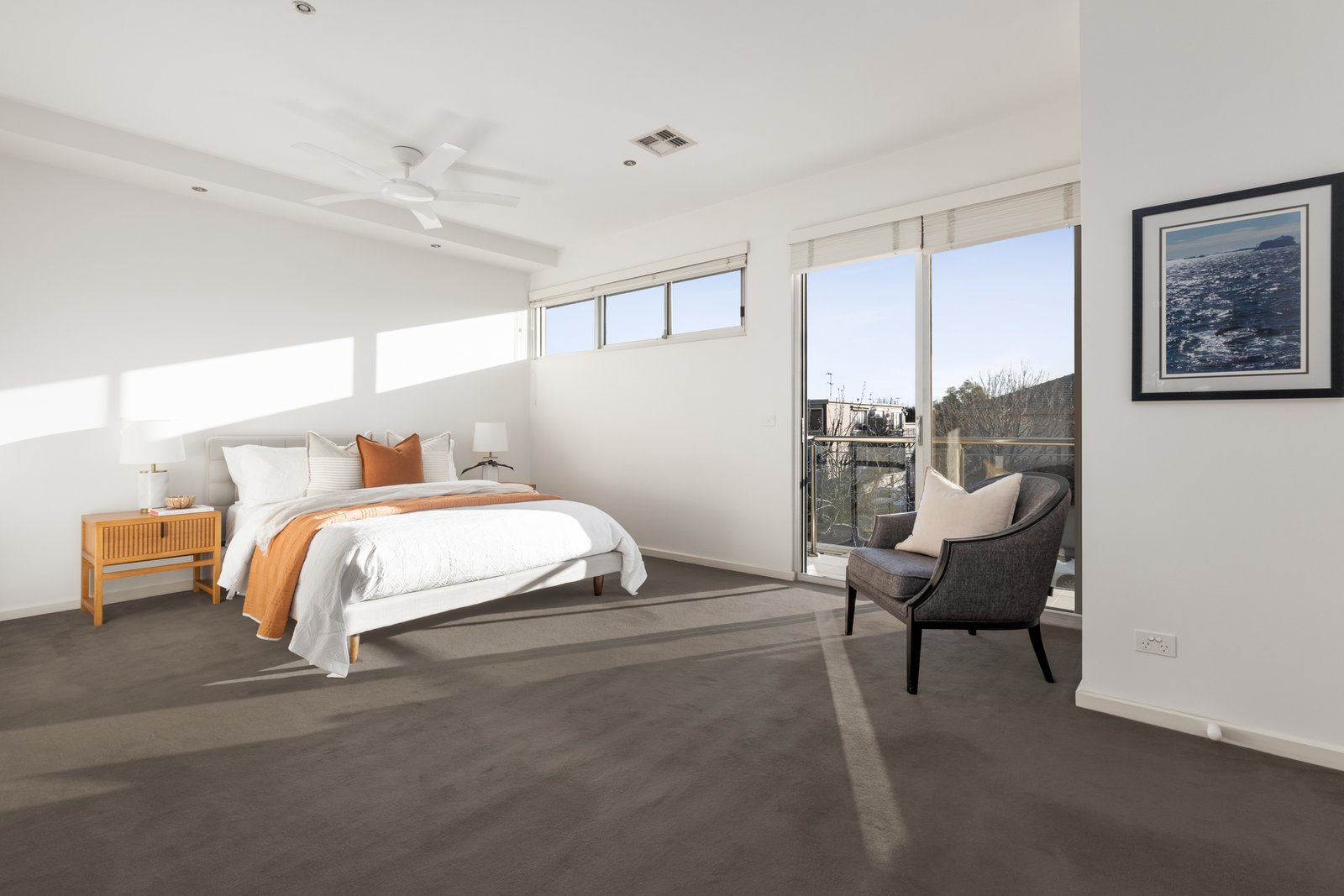 An overwhelming sense of space is the immediate first impression highlighted by the 3m ceilings and free flowing floorplan. Richly hued oak parquetry floors flow through the entrance hall to a fitted home office overlooking the forecourt, a generous dining and sitting area and then through to the exceptionally spacious open plan living room with a superb entertainer’s kitchen appointed with stone benches and European appliances. The living space opens to a glorious private landscaped northeast courtyard garden with water feature and magnificent hedge of Magnolias. With a large remote sun-awning, it is the perfect venue for al fresco dining and entertaining. The impressive proportions continue upstairs in the lavish main bedroom with balcony, walk in robe and stylish en suite, two genuine king bedrooms with robes and a designer bathroom with bath.